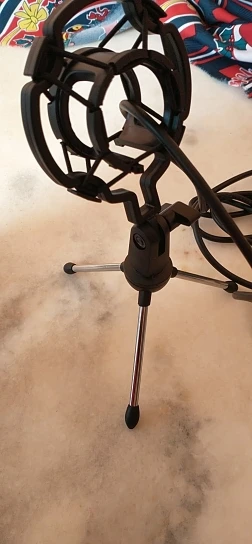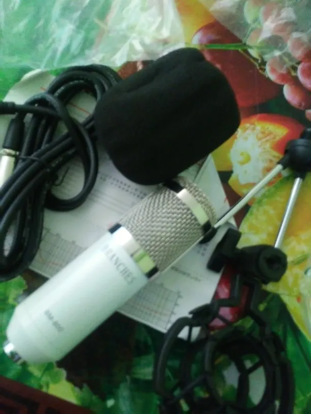 товар пришел целый,все работает,поп-фильтр немножко помят,пришло быстро,около 2 недель,хотя ожидалось в марте,доволен,проверил все работает!