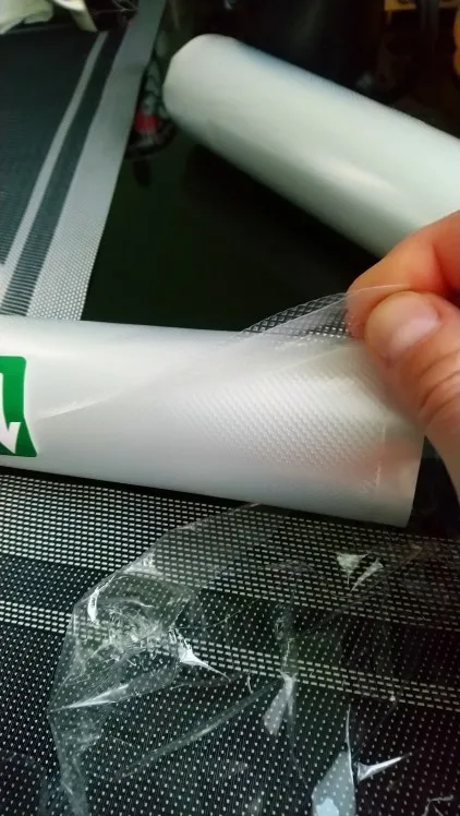 быстрая доставка, брал про запас. более мелкая перфорация плёнки, мне кажется это хуже для отсоса воздуха, но надо проверить. метраж не мерил но по весу соответствует предыдущим заказом.