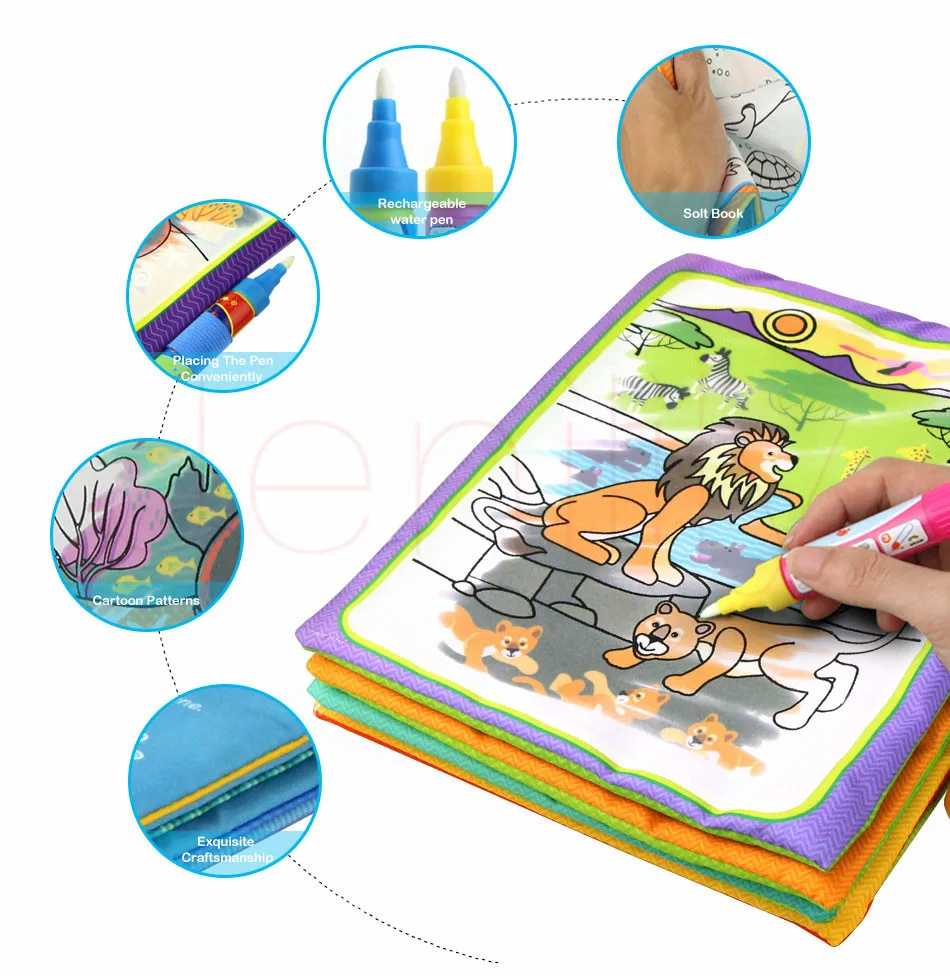 Книжка-раскраска для рисования магической водой с ручкой, Детская обучающая игрушка, животные, рисование, тканевая книга доска для рисования для детей