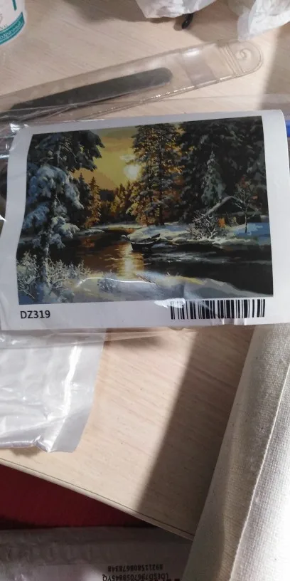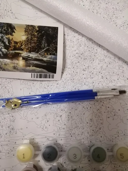 Я заказывала без рамки,в комплекте был холст,кисти,краски,крепления для рамы,рисунок .