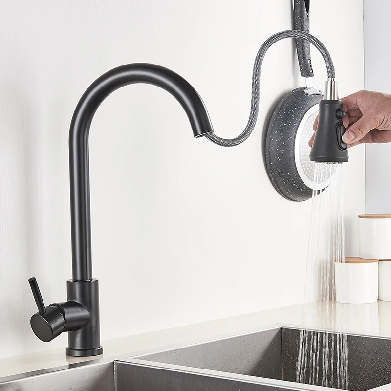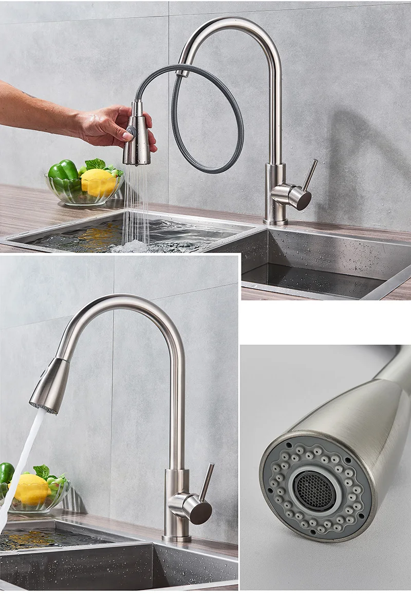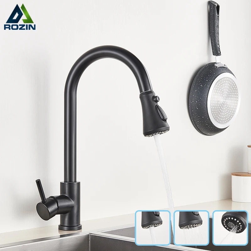 Золотой выдвижной кухонный кран с двойной функцией распылителя, краны для воды с одним отверстием, смеситель для горячей и холодной кухни