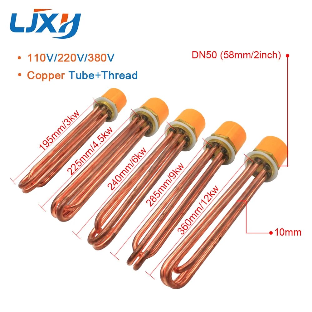Нагревательный элемент LJXH DN502 дюйма, медный резьбовой трубчатый электрический обогреватель, запчасти 110 В220 В380 В, 3 кВт6 кВт9 кВт12 кВт