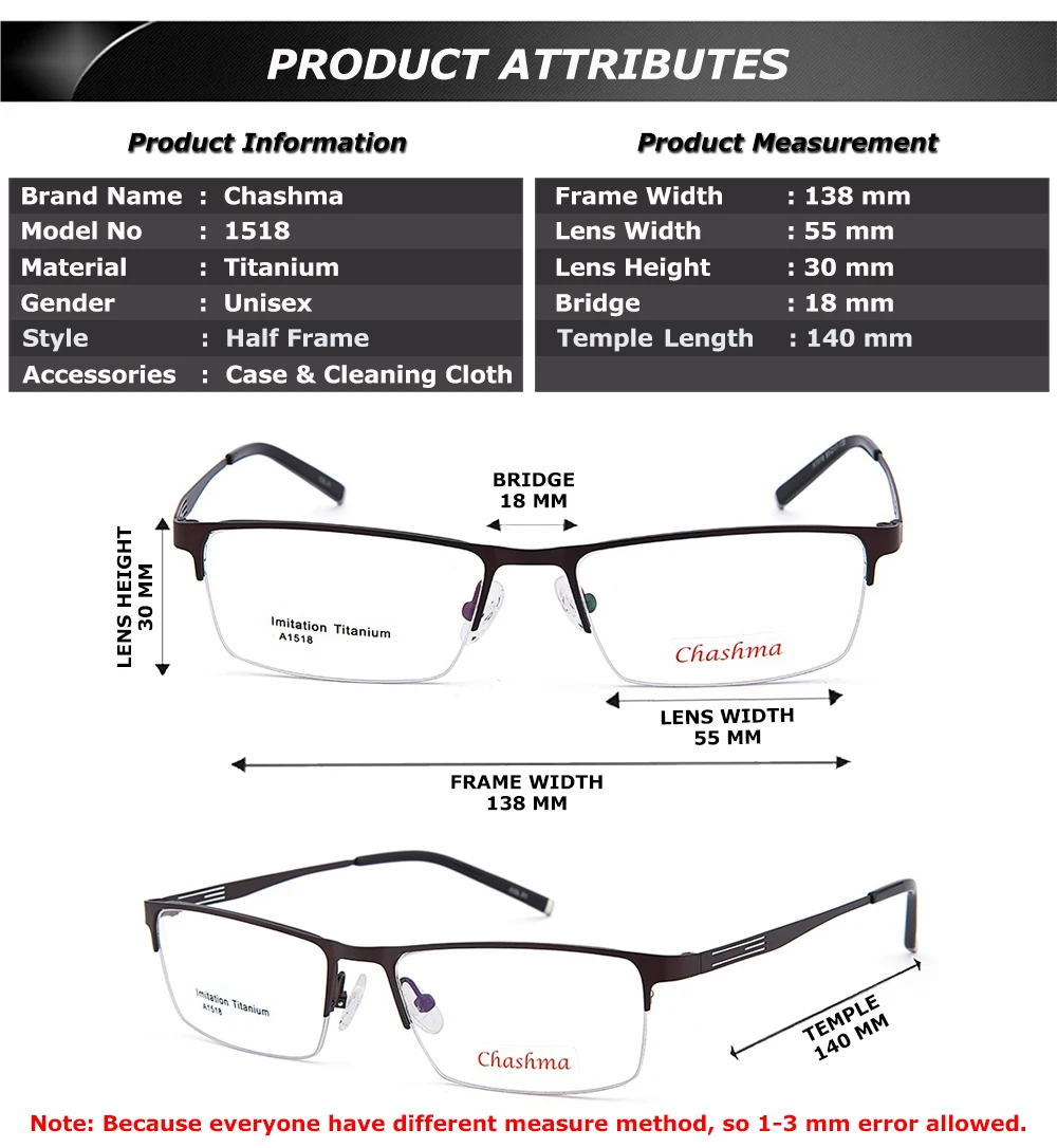 Мужские Полуободковые оптические очки Chashma, брендовые модные очки из сплава с оправой по рецепту, для мужчин