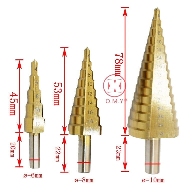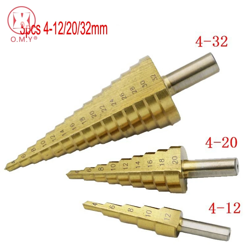 O.M.Y Профессиональный HSS Сталь большой шаг конус треугольная ручка с металлическим покрытием сверло из высокопрочной стали дыра резак 4-12/20/32 мм