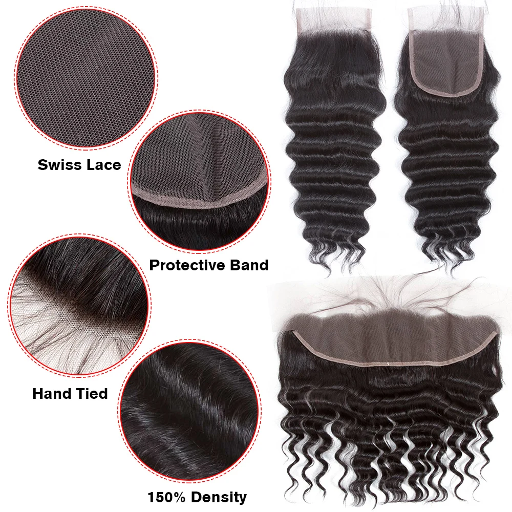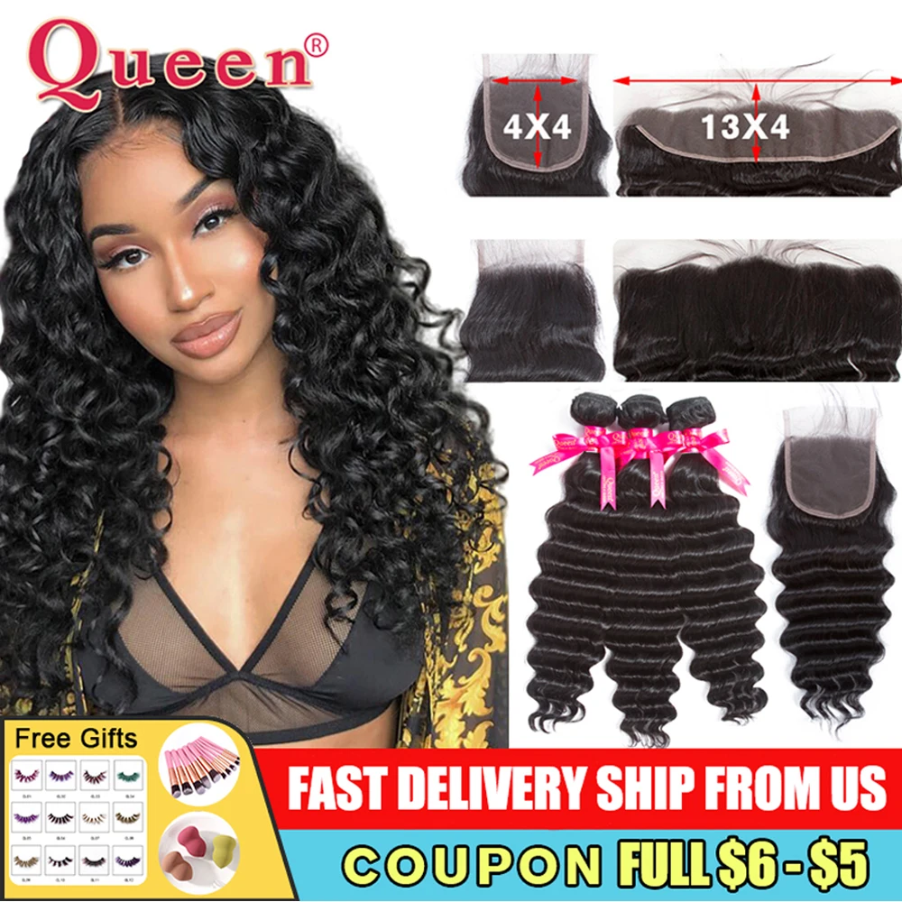Свободная глубокая волнистая пряди с закрытием бразильские пряди для волос с закрытием Remy свободная глубокая волнистая пряди с фронтальной 30 дюймов