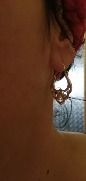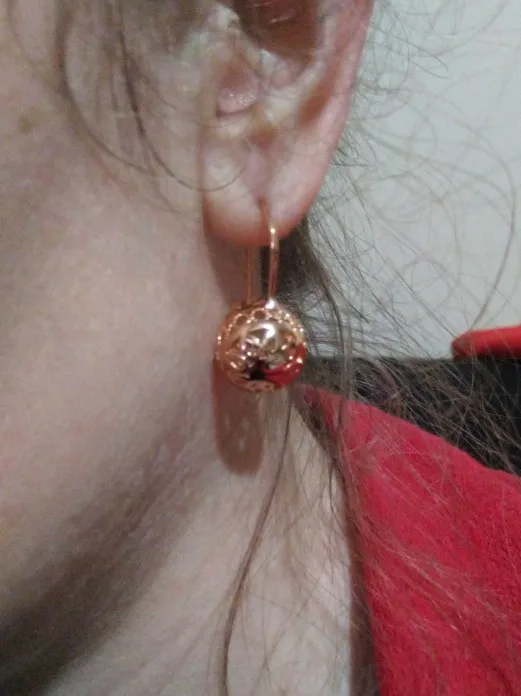 Серьги меньшего размера, чем ожидалось, так как по фото кажутся больше. А так, всё как в описании, типа золото, по весу тоже тяжеловатые. По поводу носибельности напишу позже. Доставка составила 3 недели. С продавцом не общалась.