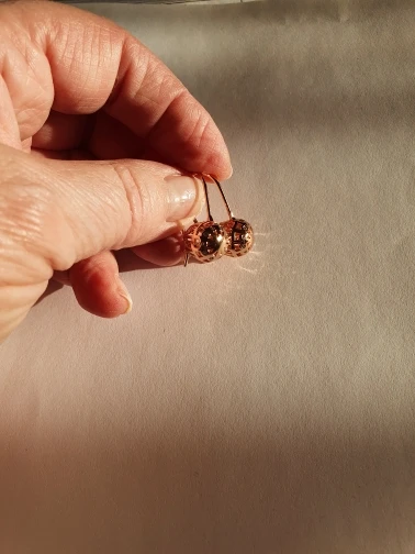серьги прекрасны. по факту цвет более яркий. ближе к оранжевому. под мои рыжие волосы