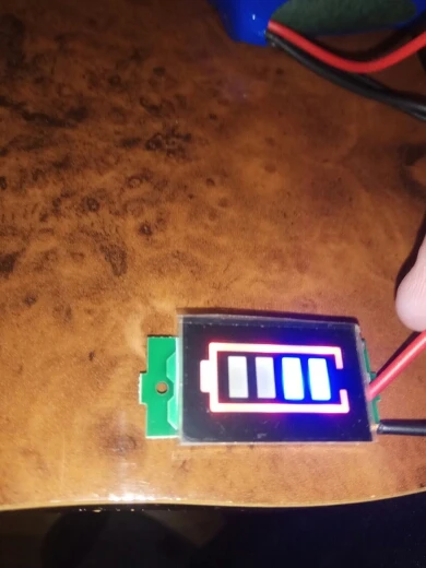 Всё как в описании. Эффектно. В реальности индикаторы не маленькие - 35мм х 20мм - не в каждую батарею встроишь, но мне подошли под 5 шт на 21В. Нужен какой-то светофильтр из оргстекла на окошко в корпусе. Есть задержка около 1,5 с после включения "рамки" батареи и измерением в делениях. Чем больше заряд, тем выше общая яркость. Потребляют около 3-5 мА. Лучше садить на отдельную кнопку, чем городить дополнительный проводок обратно от кнопки электроинструмента через разъём аккумулятора. Заказывал 4 шт. Так один откалиброван иначе - с превышением в 0.1В на каждом пороге. Будем разбираться. Запаяны в антистатику. Упаковка пупырка. Шли 17 дней до Оддессы.