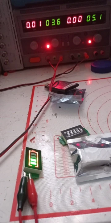 Заказ пришел за 2 недели. Уровни индикации в режиме 1s - 3,2В пусто, 3,5В одно деление, 3,6В два, 3,7В три, 3,8В и выше - полный. Режимы переключаются перепайкой перемычки в пределах 1s-8s