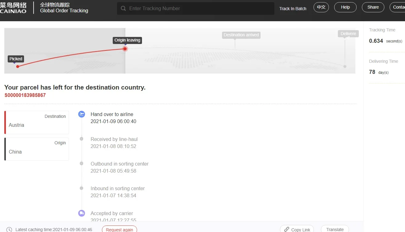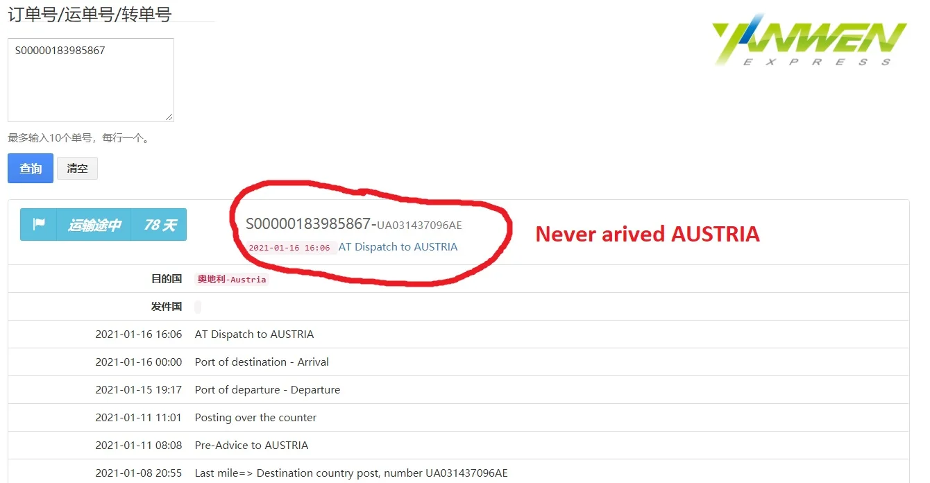Товар не прибыл в Австрию. Продавец дал мне совет, чтобы обсудить спор. Продавец отклонил этот спор! Неприятный человек. Я смог подтвердить Aliexpress, что товары не прибыли в мою страну, и они согласны на спор. Спасибо Aliexpress! Каждый может получить идею об этом для себя.