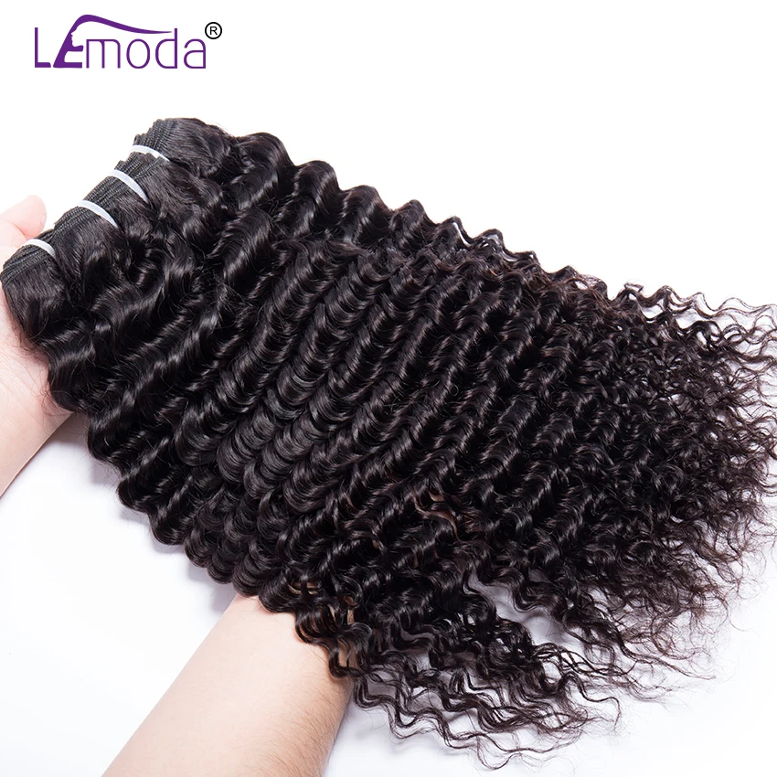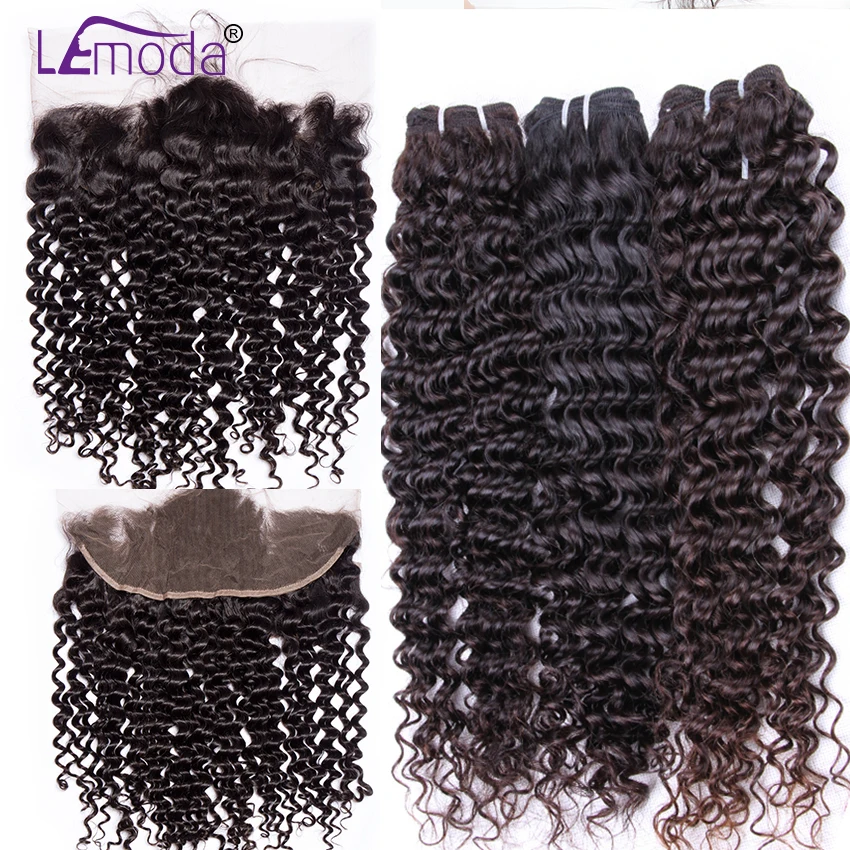 Кудрявые человеческие волосы пряди с фронтальной застежкой LeModa бразильские волосы плетение пряди с кружевной фронтальной застежкой Remy волосы для наращивания