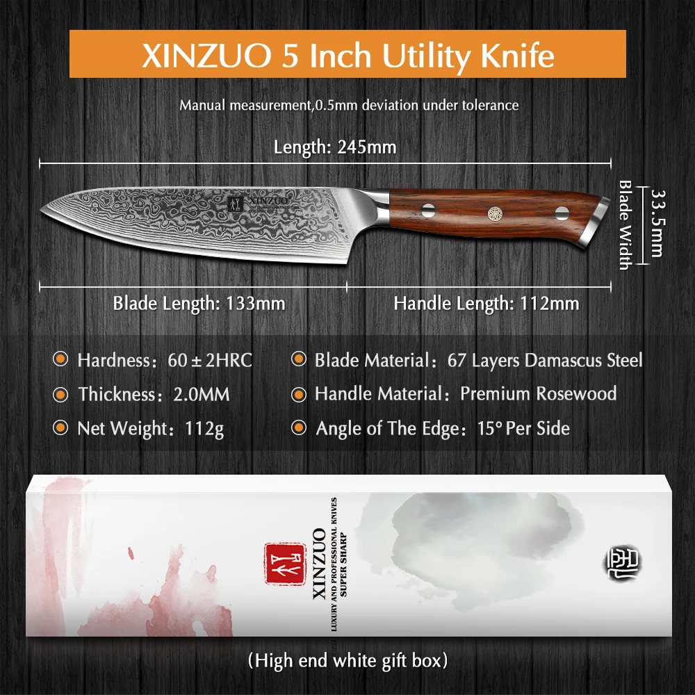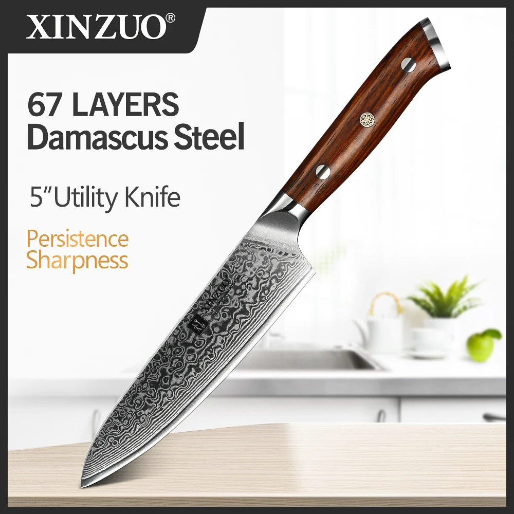 Нож кухонный XINZUO VG10 из дамасской стали, 5 дюймов