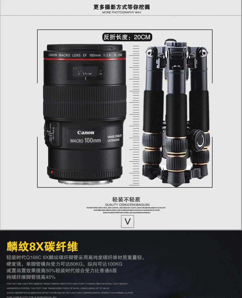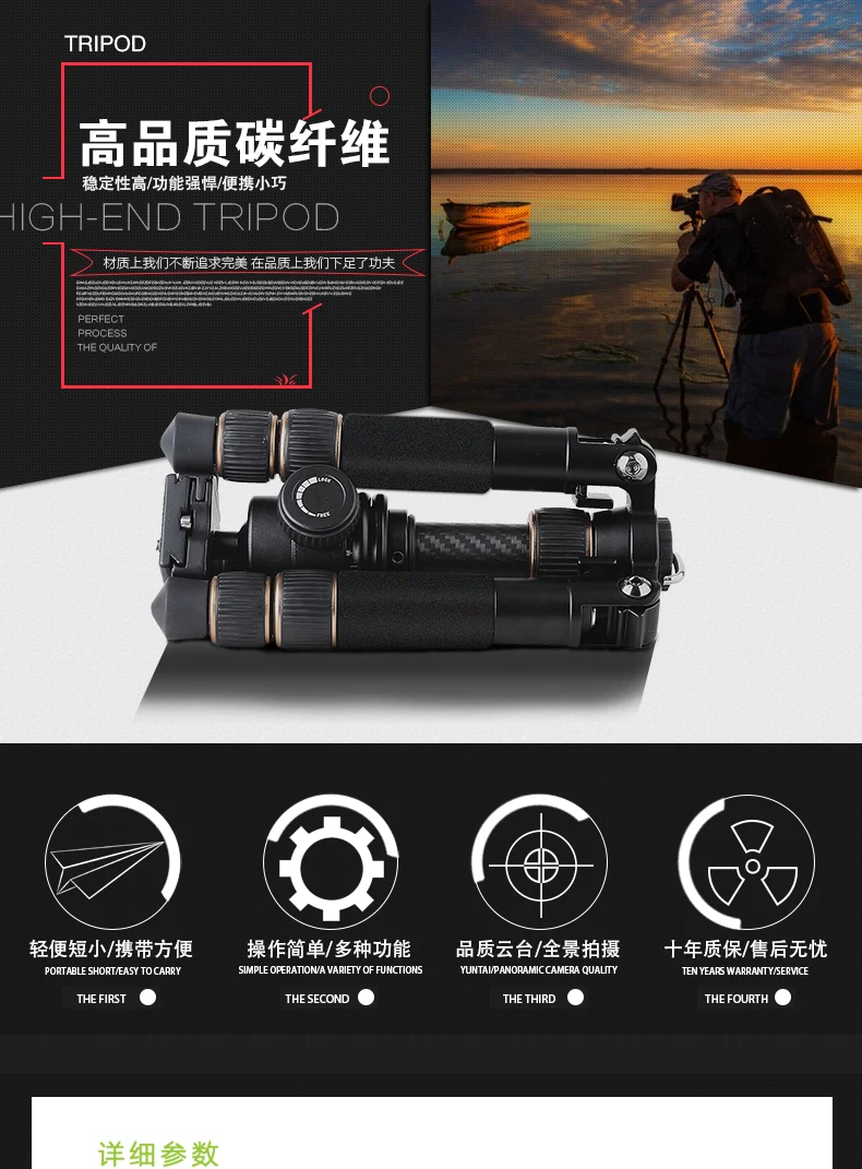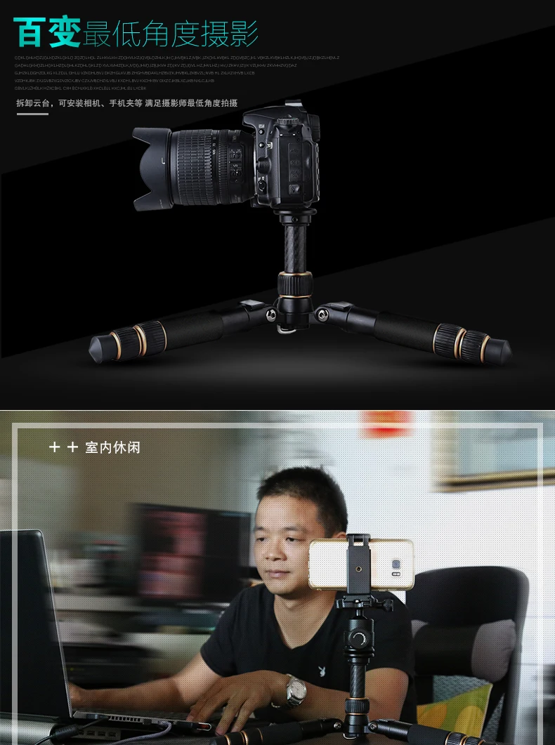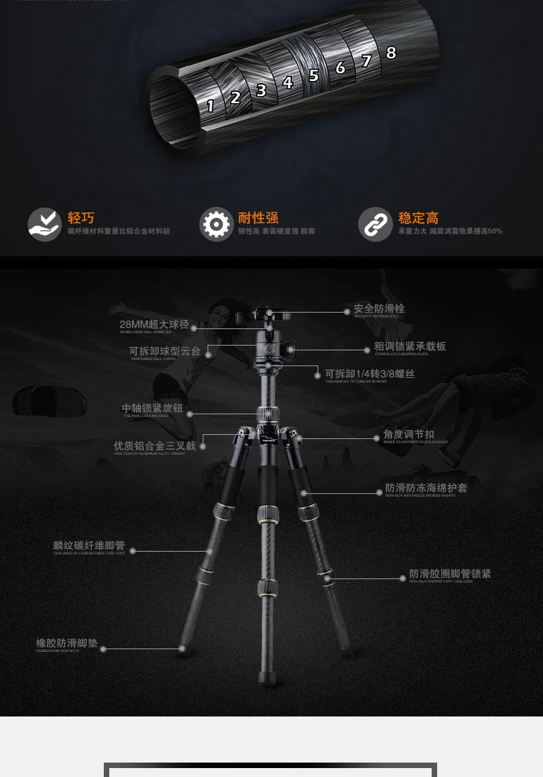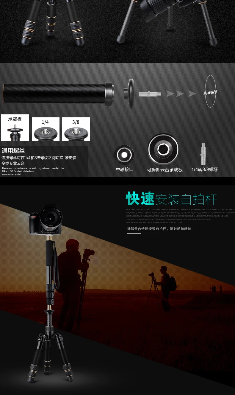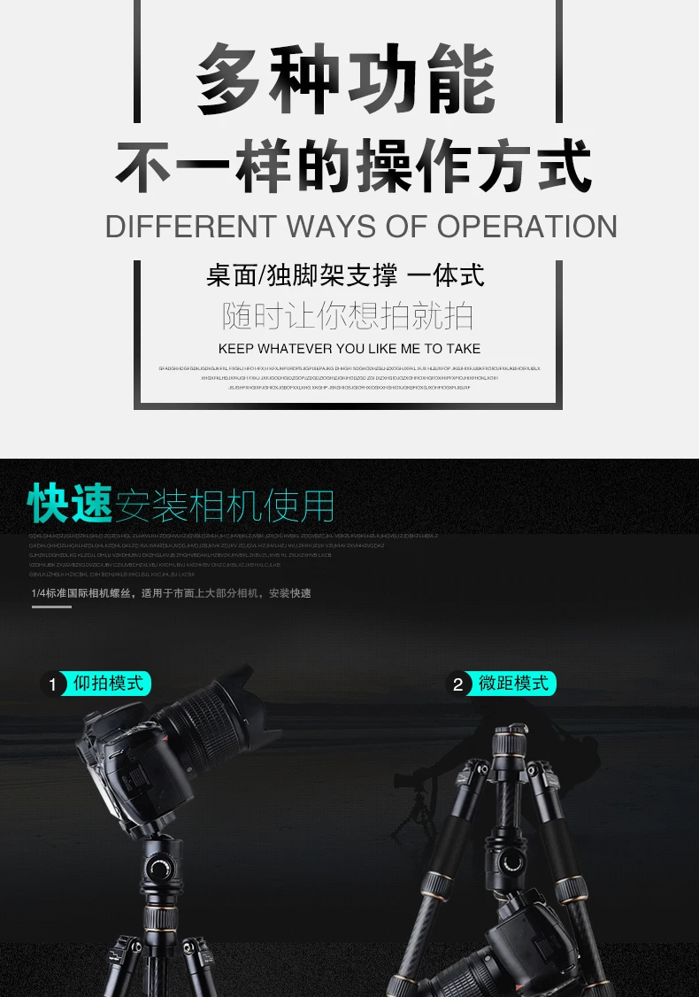 Fosoto QZSD Q166C Профессиональный портативный дорожный настольный мини-штатив монопод из углеродного волокна с шаровой головкой для цифровой зеркальной фотокамеры DSLR