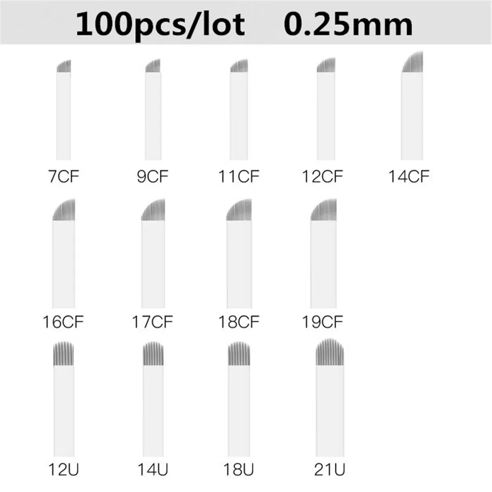 100 шт.коркор. иглы для микроблейдинга, перманентные иголки для татуажа бровей, ручка для вышивания, Перманентный макияж, товары для татуажа бровей