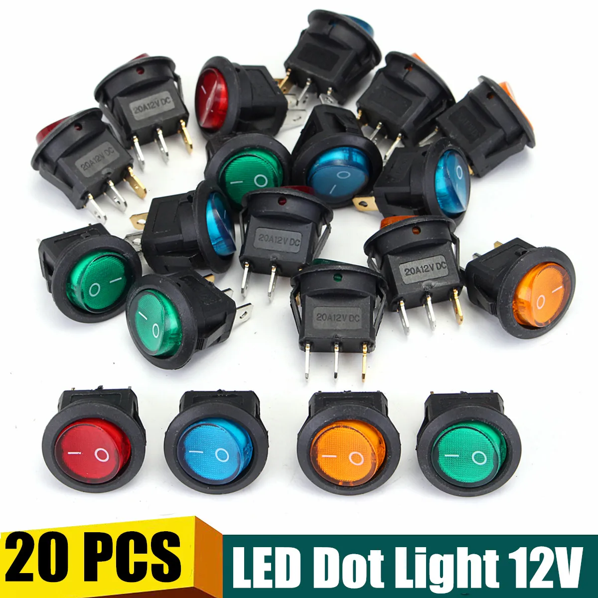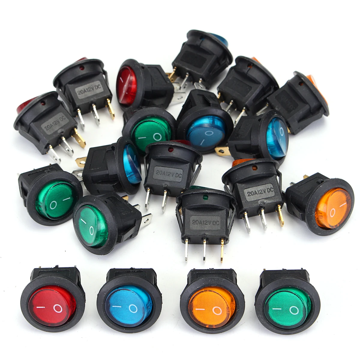 20 шт. четыре цвета 12 В 3 контакта светодиодный тумблер SPST переключатель Точечный светильник Автомобильный Автоматический круглый ВКЛВЫКЛ