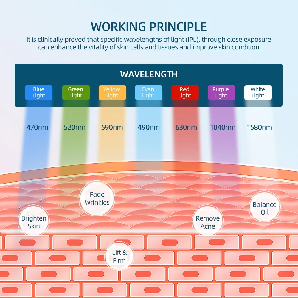 Светодиодная фотонная терапия для лица, 7 цветов, омоложение кожи, удаление против морщин, акне, массажер для лифтинга лица, девайс для салона красоты и спа
