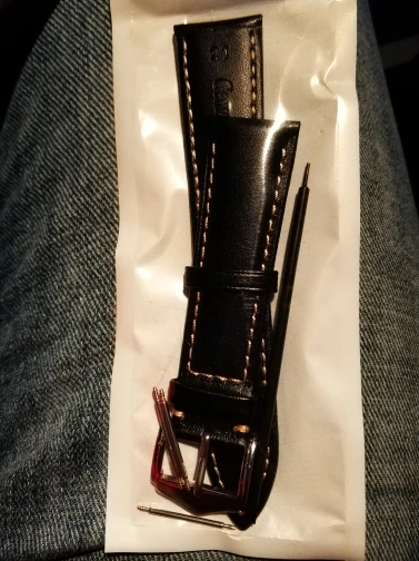 Хороший ремень. Отверстия в ремне под штифт - отличные, влезли советские штифты диаметром 2 мм! За это - отдельное спасибо. Теперь точно не потеряю часы. В комплекте очень удобный инструмент для снятия ремня с часов и 4 штифта.