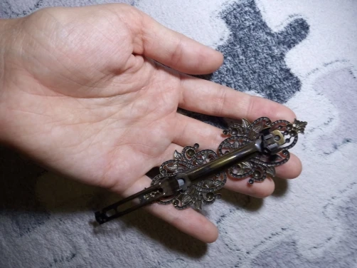 Заколочка маленькая-думала она больше-но на волосах дочери смотрится аккуратно. Красивая ажурная покупкой довольны