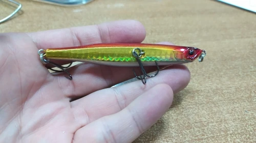 Начну сразу с негатива.Во-первых,посылка шла долго,где-то месяц.Во-вторых, не отслеживалась.В-третьих,упаковка-целофановый кулёчек.В-четвёртых,покраска дрянь (со стороны крючков,весь воблер поцарапан).Петли клеить ОБЯЗАТЕЛЬНО !!!Крючки менять ОБЯЗАТЕЛЬНО. И в-пятых,продавец хамло.Вобщем,даже за 1$,один негатив.