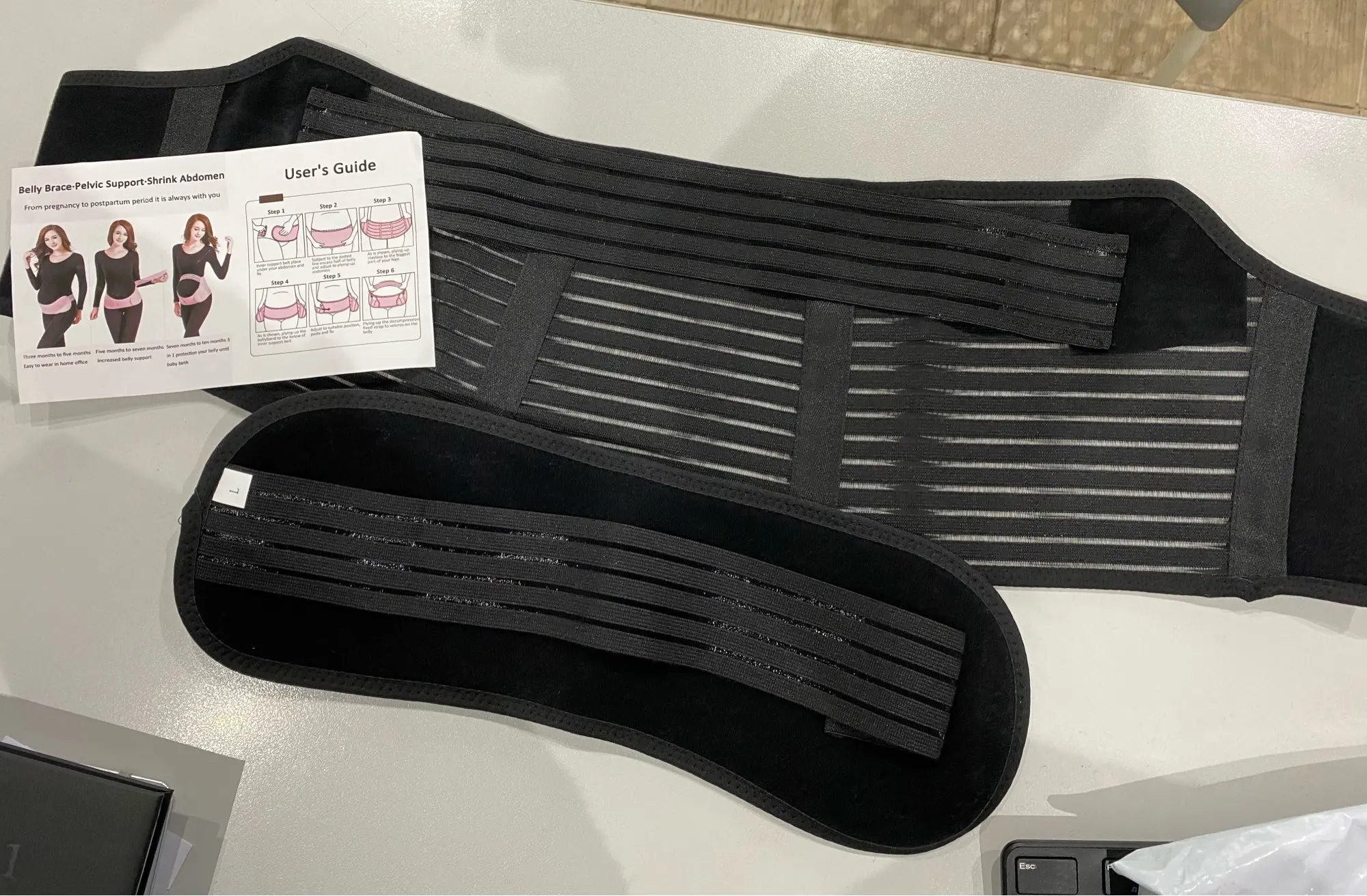 Товар пришёл очень быстро. Качество просто супер, швы ровные. у нас такой же стоит 2.5тыс рублей в магазине для мам. держится надёжно, но мне сейчас великоват. Брала на вырост живота, сейчас спокойно можно носить одну повязку, если потребность. Очень рада. Инструкция в комплекте, но и без неё все понятно. Думаю будет держать надёжно, не прижимает.