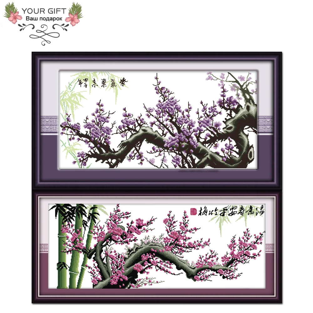 Joy Sunday цветы украшение для дома H041(1)(2) Фиолетовый воздух поступает с востока цветок вышивка крестиком Neelecraft DIY вышивка наборы