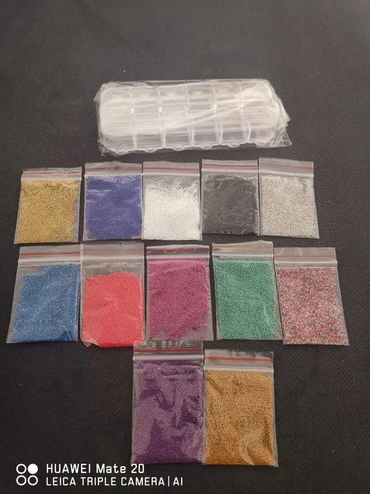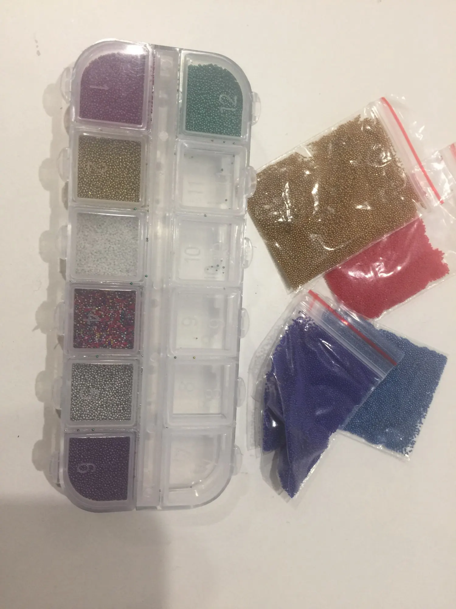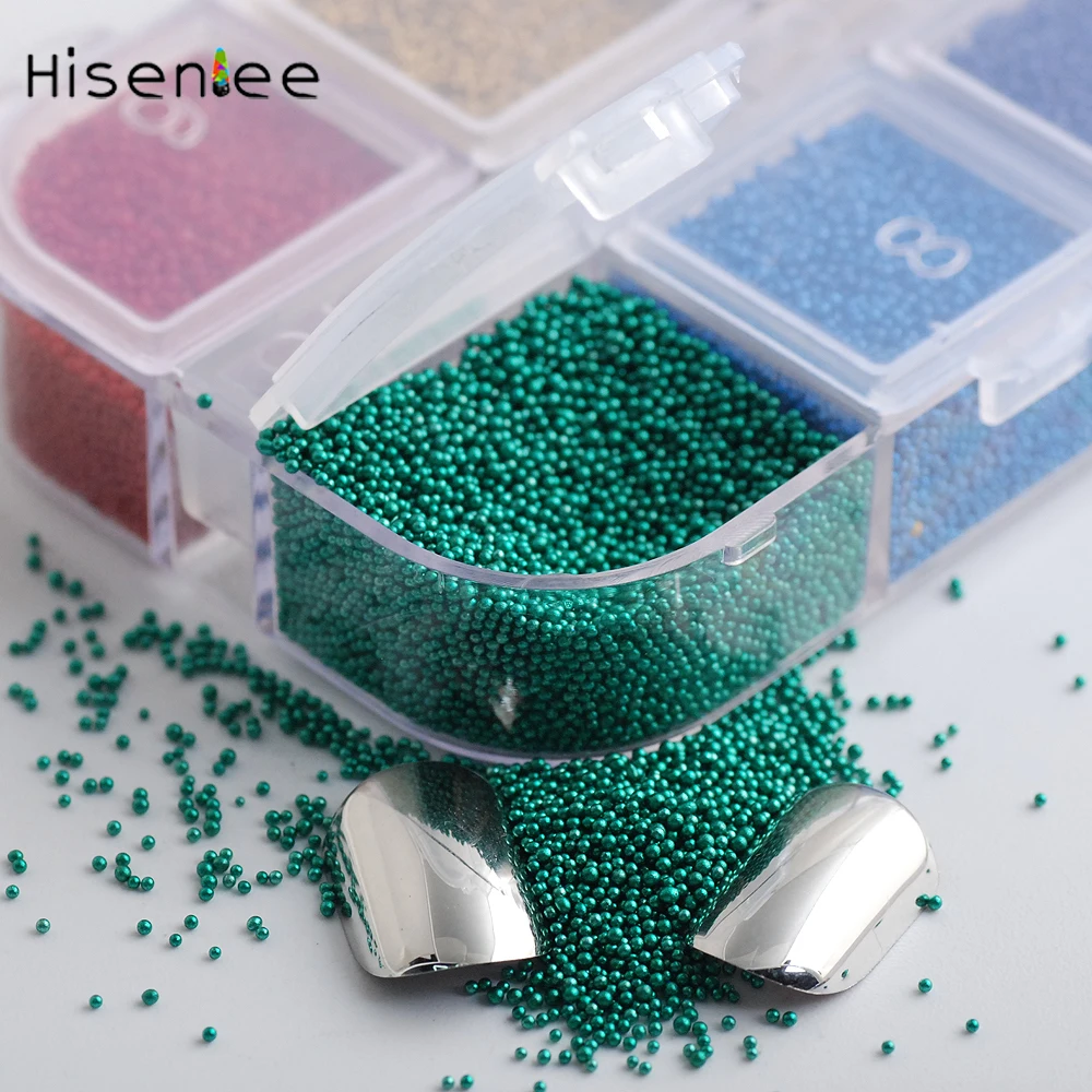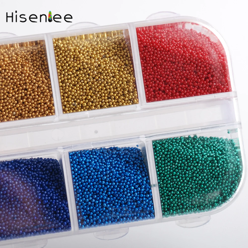 Hisenlee, 12 цветов, 1 коробка, микрокристаллические бусины для ногтей, стекло трендовая Икра, наконечники для украшения ногтей, набор для дизайна ногтей