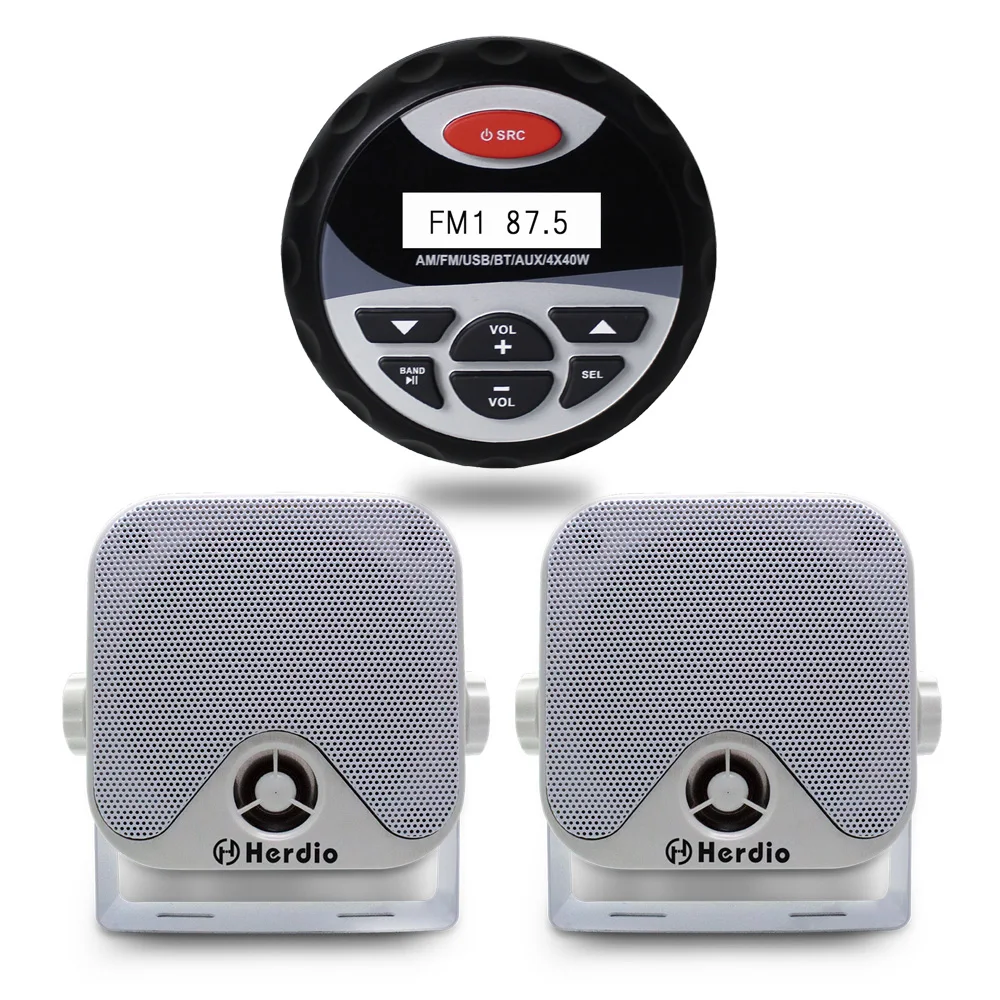 Herdio морской стерепосылка Bluetooth аудио лодка AM FM радио мотоцикл USB MP3 4*40 Вт Aux в 4 "Морской бокс динамик настенный монтаж