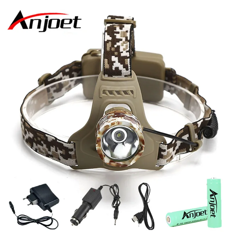 Anjoet 3000 люмен XM-L T6 светодиодный фонарь, головсветильник фонарь, фонарь для кемпинга + 2 батареи 18650 + зарядное устройство для автомобильного разъема
