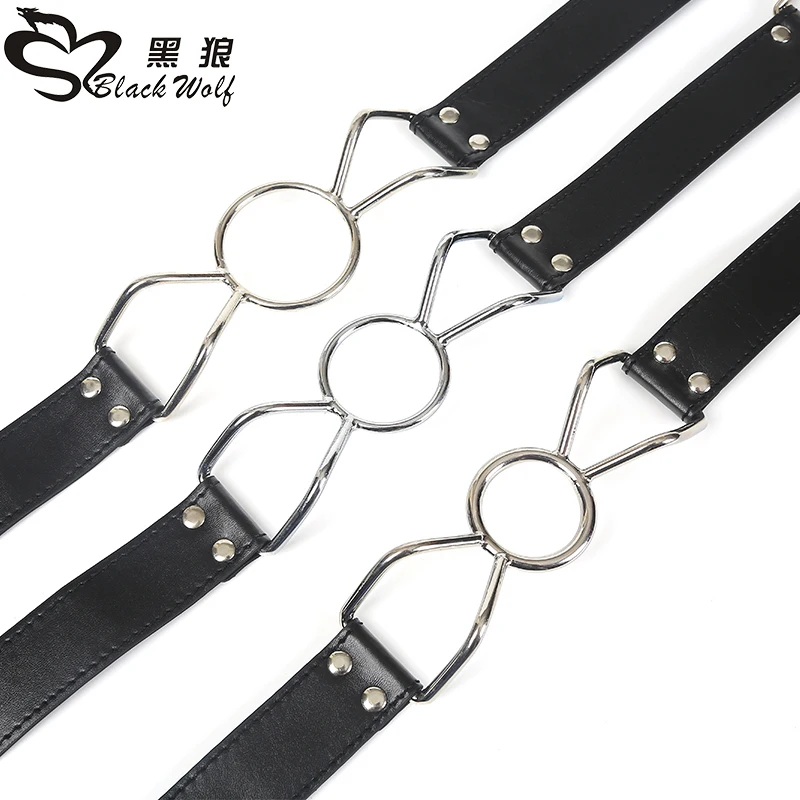 BLACKWOLF Slave кожа бондаж рот кляп открытый рот удерживающее уплотнительное кольцо кляп интимные игрушки для женщин пары взрослые игры интимные товары