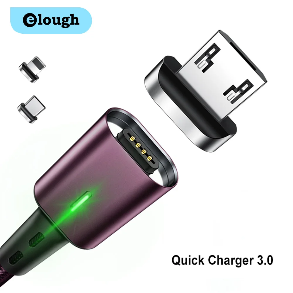 Elough 3 в 1 Магнитный заряд для iphone xs max xr x 8 7 плюс 6 5 6 S тип с кабель микро USB кабель телефон светодиодный магнит провод зарядного устройства