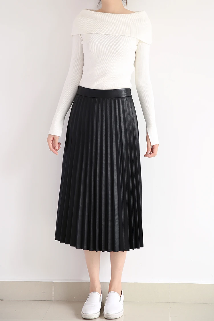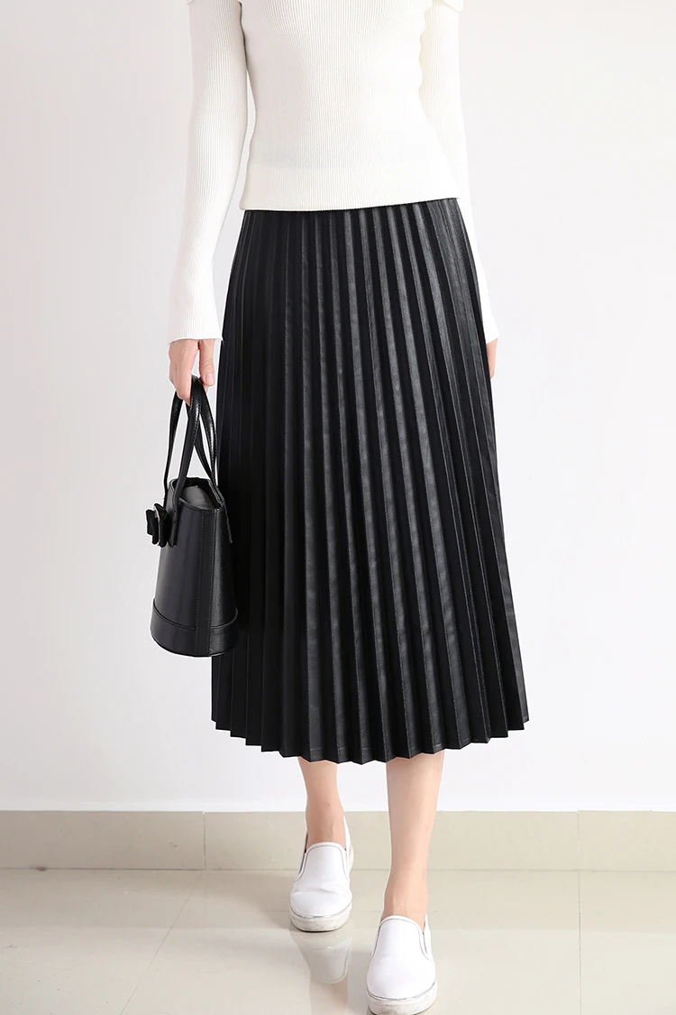 Ropa De Mujer 2021 элегантные модные женские туфли по всей длине голенище натуральная кожа 75 см длинная юбка в складку Женская наппа на улице черная мини-юбка Faldas
