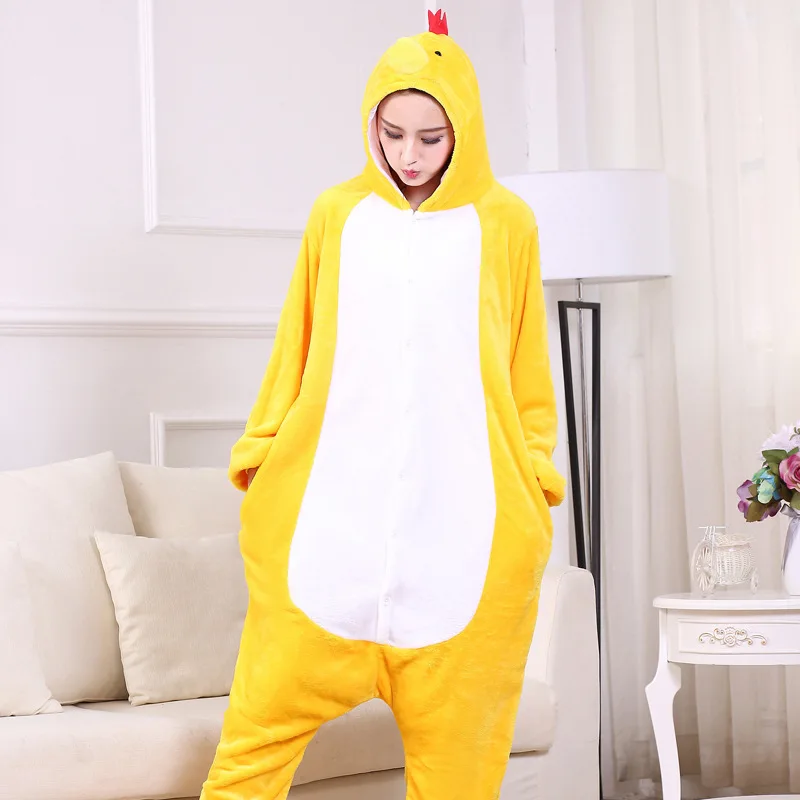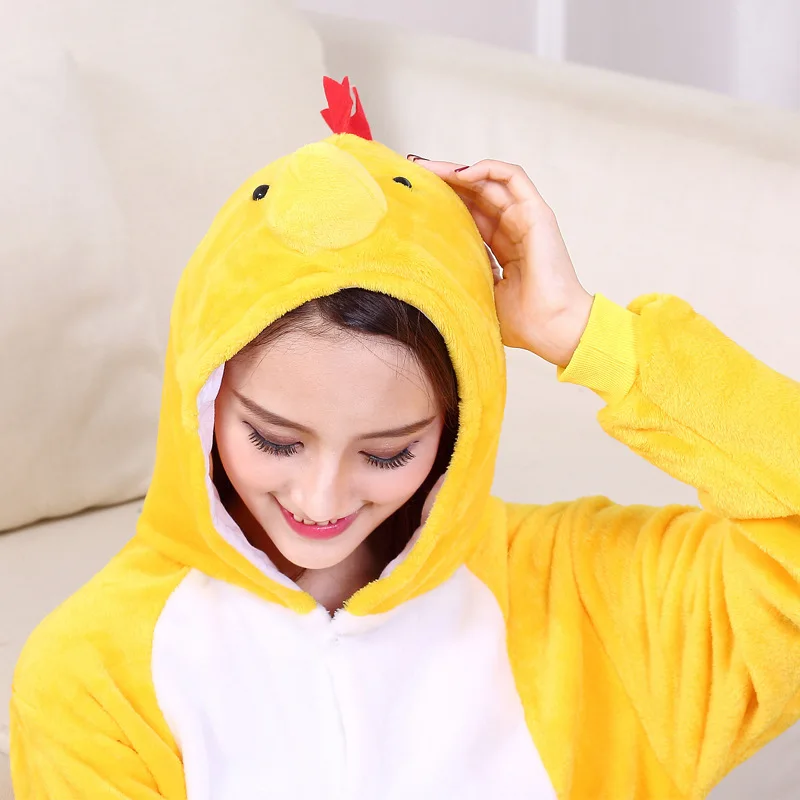 Взрослые пижамы кигурумис для взрослых, комбинезон унисекс с длинными рукавами, Забавный милый костюм для вечеринки, желтый, фланелевый, теплый