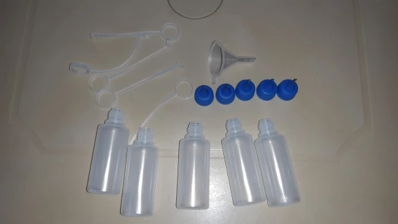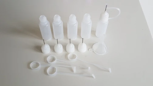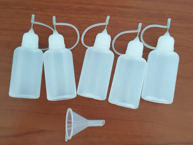 Удобные флакончики. В комплекте - маленькая воронка. Рекомендую