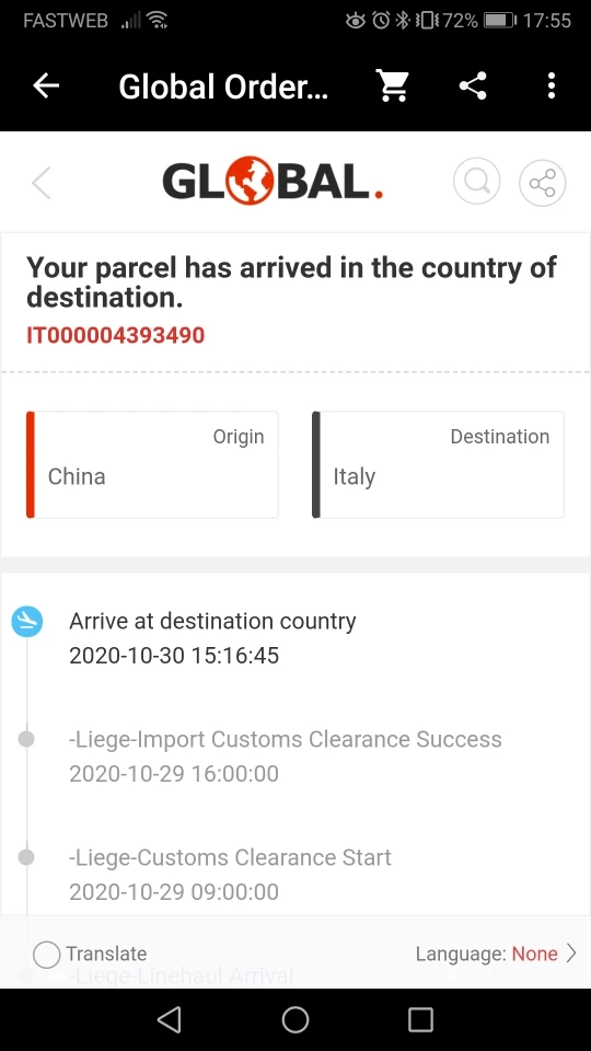 Страна: IT Доставка: Cainiao Super Economy Global 27.11.2020