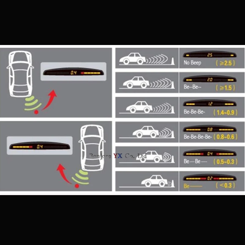 Двухъядерный процессор Процессор Торговая марка:KООRinwОО Повышающий звуковой сигнал Детектив расстояние от 0,3-2 м Может быть соединен с камерой, любым монитором заднего вида и отображать расстояние на мониторе Напряжение 12V 4 * Сенсор Длина кабеля: 2,5 м 2 * длина сенсорного кабеля: 6 м Сенсор диаметр: 16,5 мм Громкость аварийного сигнала 65dB Температура хранения:-40 ~ 60 градусов по Цельсию Рабочая температура:-40-60 градусов по Цельсию Материал с хорошей передачей звука BIBI Когда вы тормозите, фронтальный датчик и фронтальная камера будут вместе-расстояние передних датчиков будет отображаться на фронтальном изображении, когда вы задним ходом, камера заднего вида будет работать вместе-расстояние между задними датчиками будет отображаться на заднем изображении.