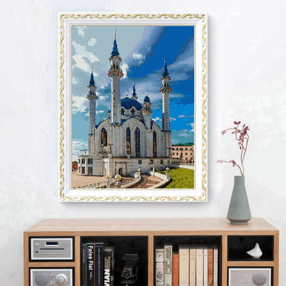 Алмазная 5d Вышивка из круглых квадратных страз, замок, пейзаж, живопись, вышивка крестиком, мозаика, мечеть, пейзаж, искусство