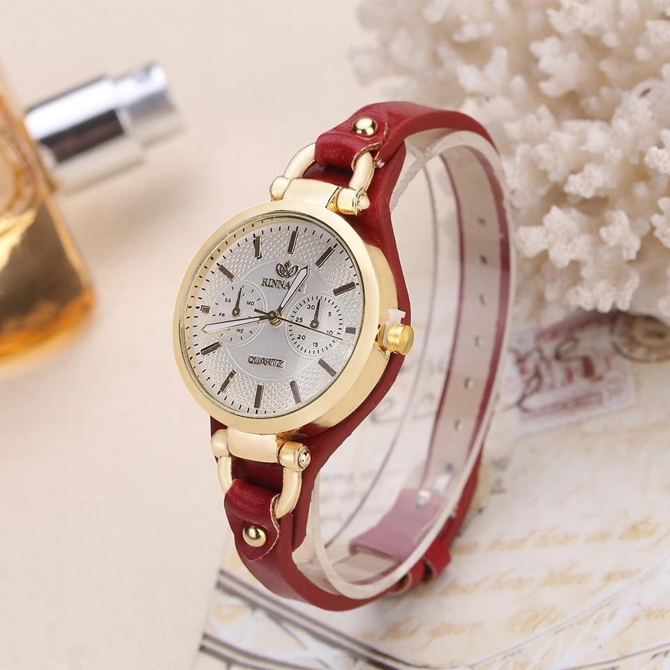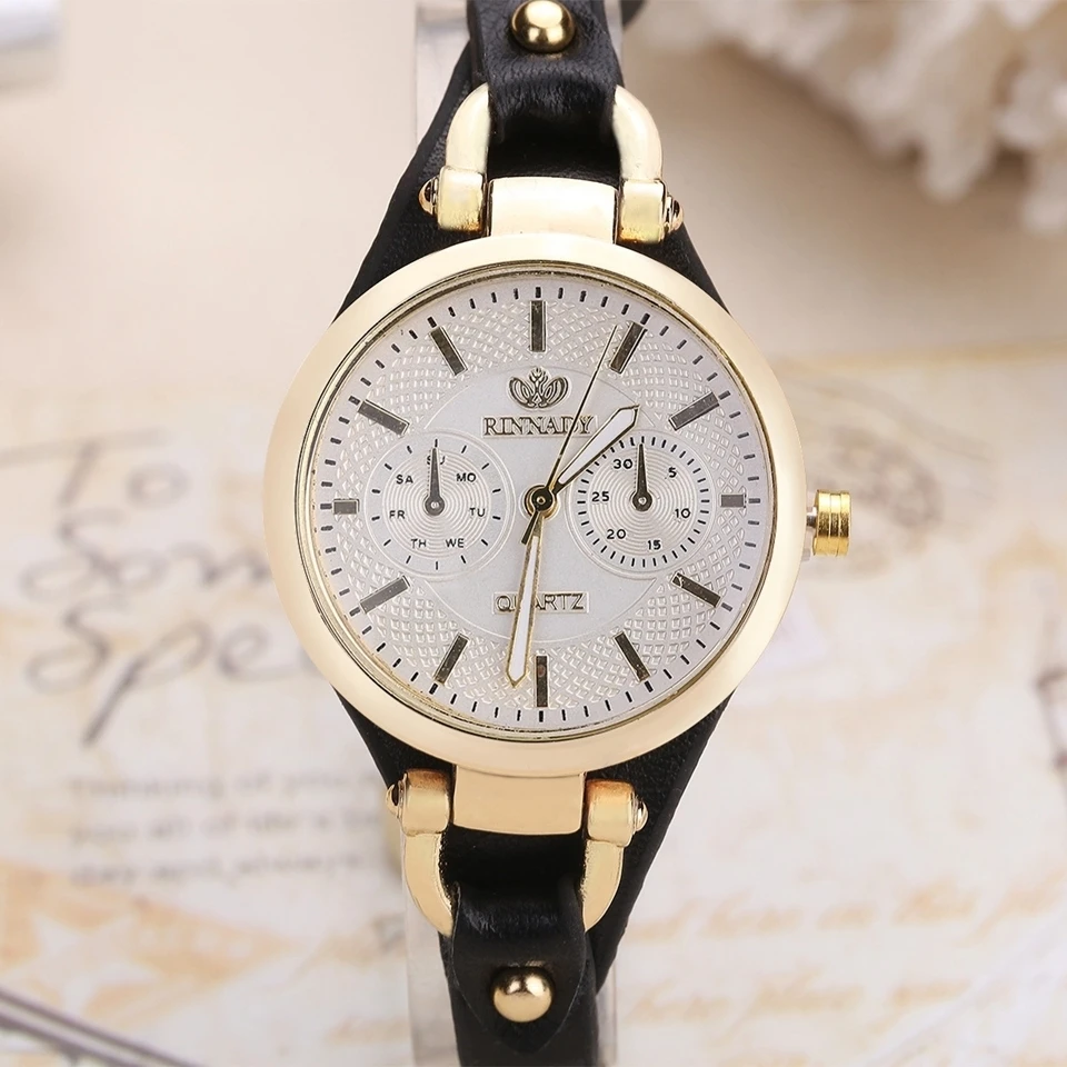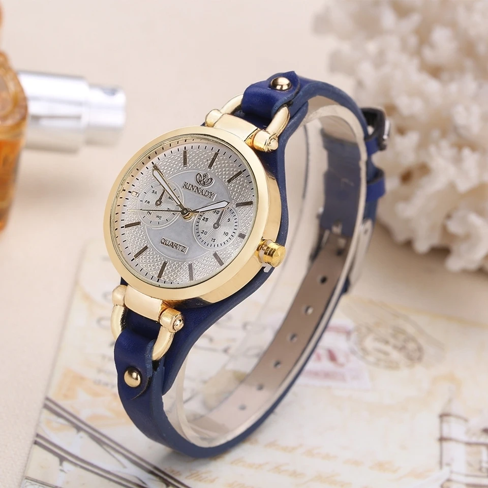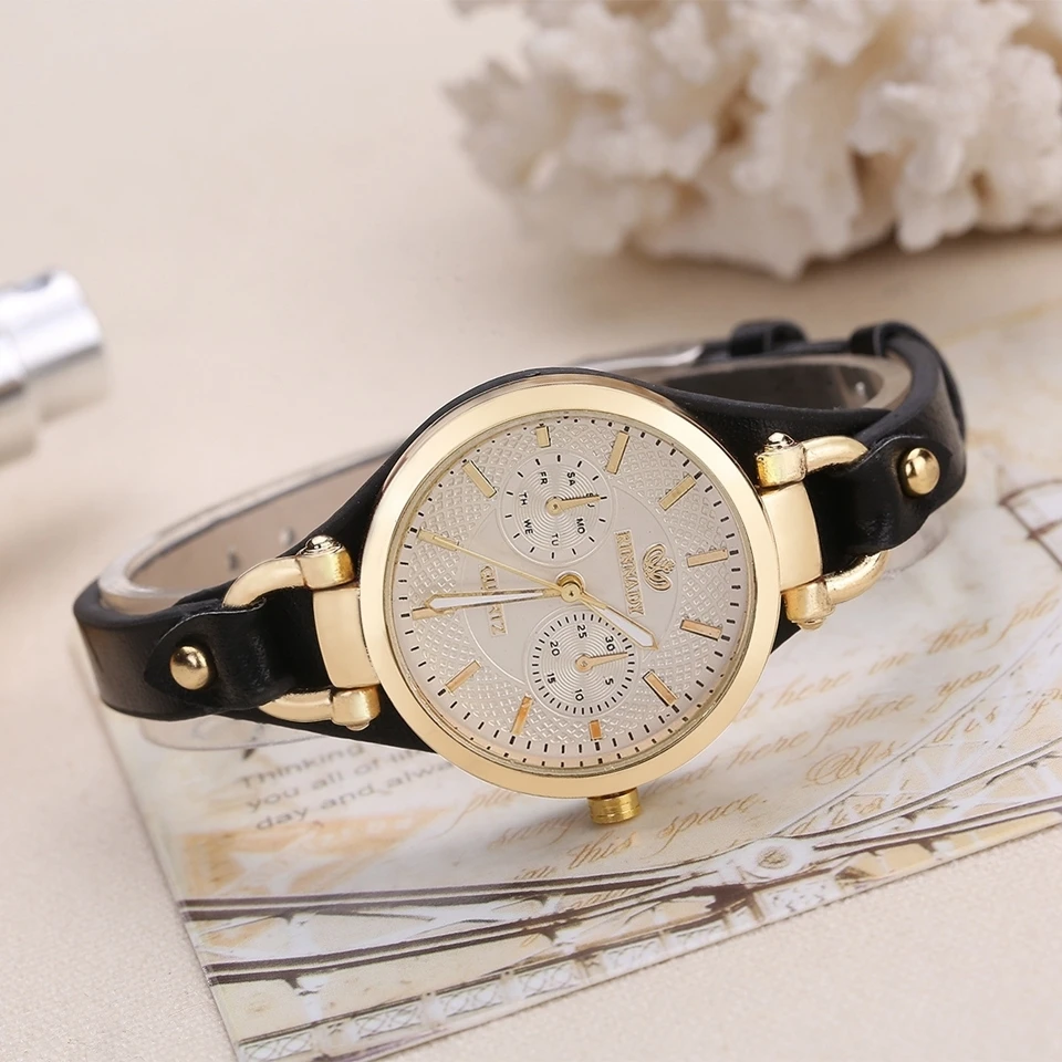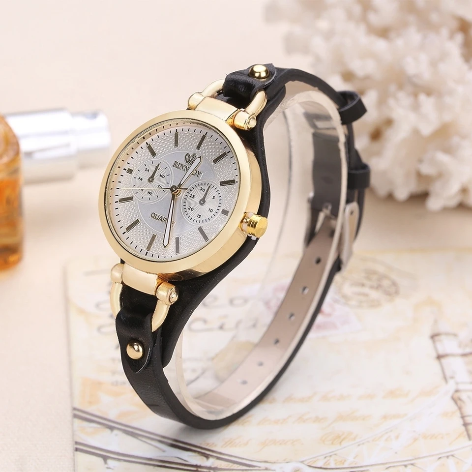 Часы женские кварцевые под розовое золото с кожаным ремешком