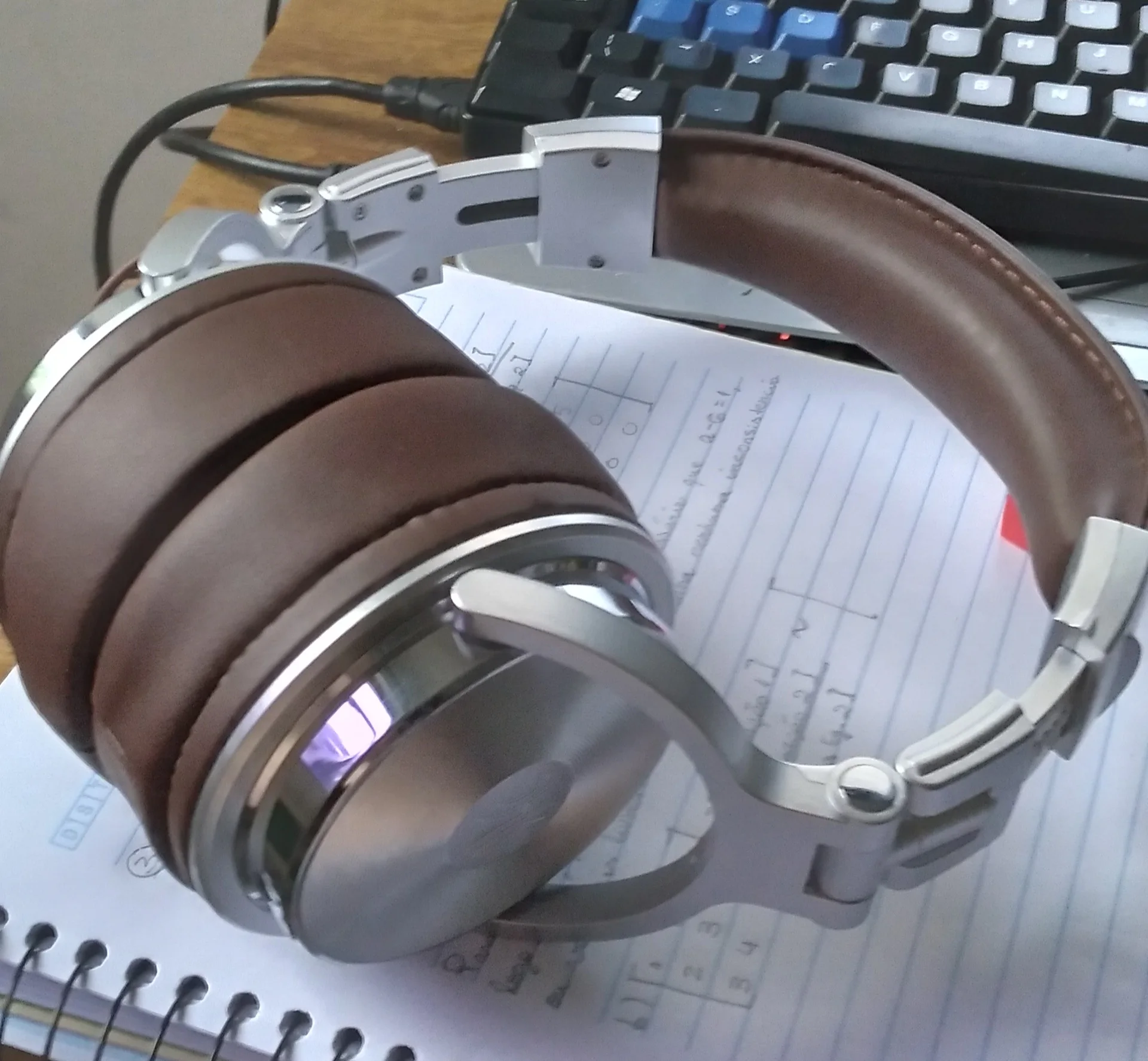 наушники хорошие доставили быстро со склада России, качество материала хорошее, цвет ближе к черному, 2 кабеля в комплекте, покупал для электрогитары для тренировок, звук вроде ничего такой, может будет лучше когда разыграются, очень мягкие, поролона не пожалели. Неудобство для меня только одно дужки в рабочем положении не фиксируются а постоянно проворачиваются в то положение какое хотят пока не наденешь на голову.
