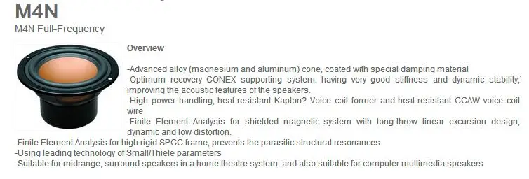 Отзыв о товаре Hi-Fi динамик HiVi Swan M4N 4 дюйма, Hi-Fi Полнодиапазонный динамик с алюминиевым покрытием и покрытием из магниевого сплава, экранированный, 8 Ом15 Вт, внешний диаметр 116 мм, 1 шт. от пользователя A***v