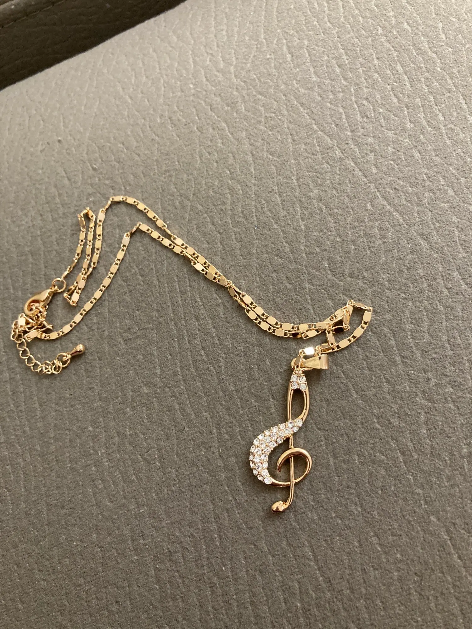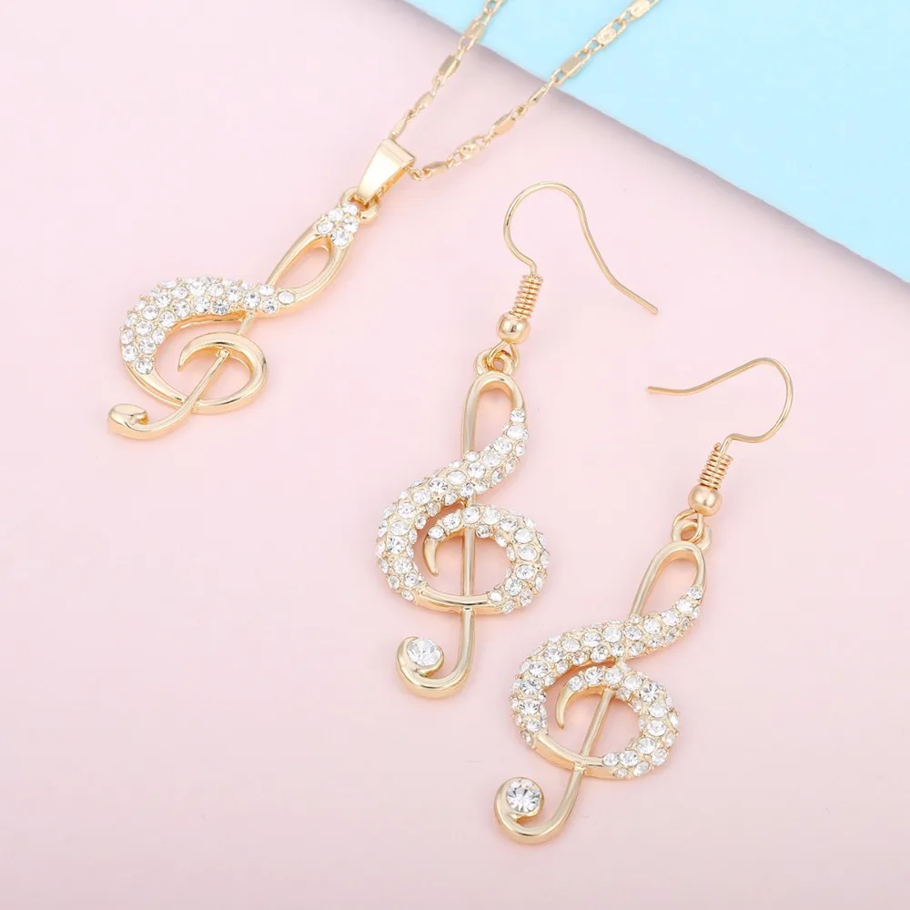 Ожерелье с подвеской в виде музыкальной ноты с кристаллами золотого цвета, набор музыкальных фанатов, модное Ювелирное Украшение, чокер до ключиц, колье для женщин
