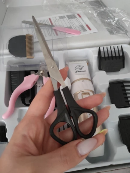 Брала для американского кокер-спаниеля. Собака еще маленькая и щенячий пух стрижет хорошо. Работает сравнительно тихо. Собачка поначалу боялась а потом расслабилась. Пропусков не делает. Через насадки тоже удобно. Упаковка целая, все запечатано. Спасибо. Я довольна.