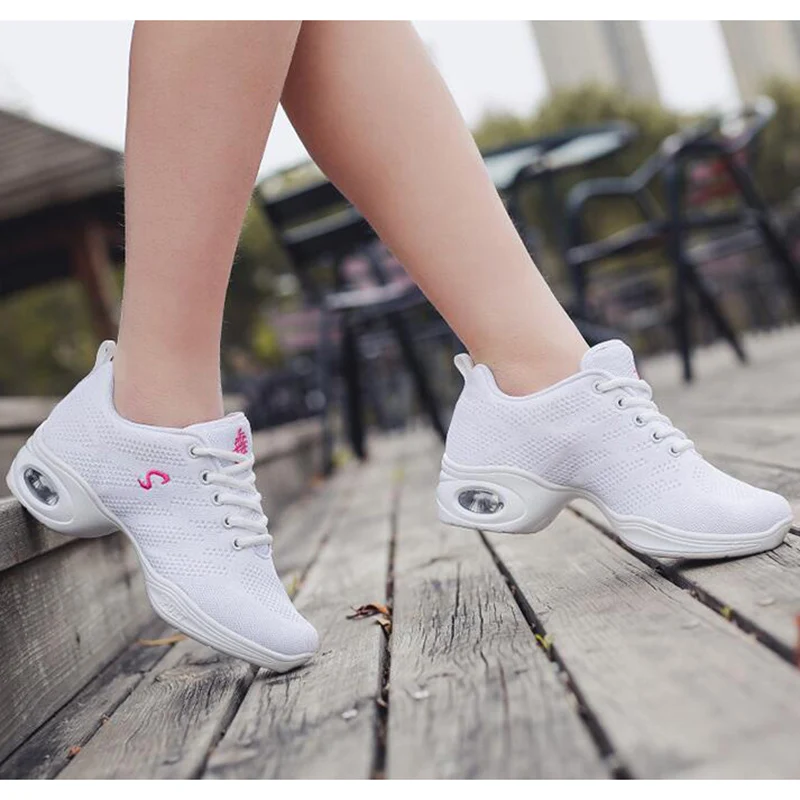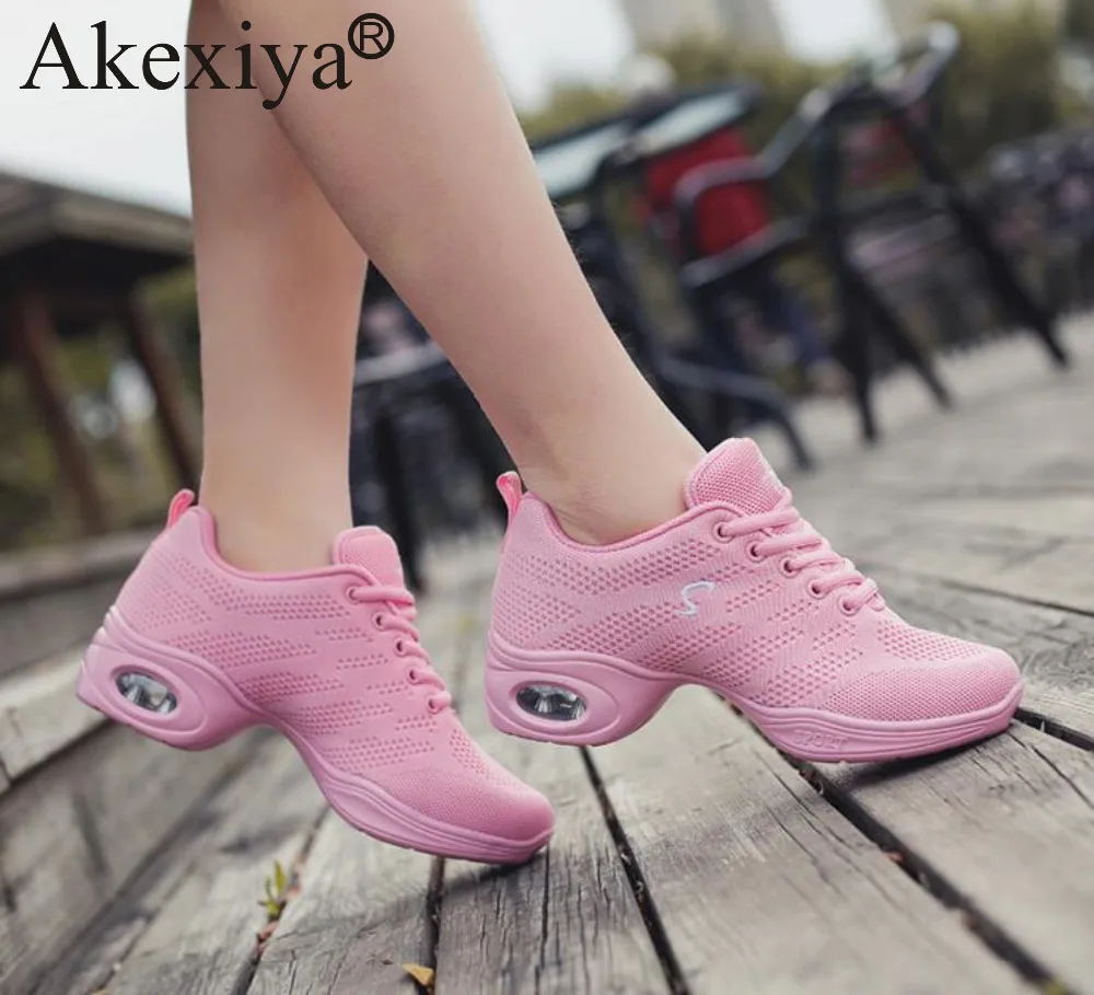Кроссовки Akexiya женские для фитнеса и танцев, розовые дышащие сетчатые туфли на воздушной подушке, обувь для джазовых танцев