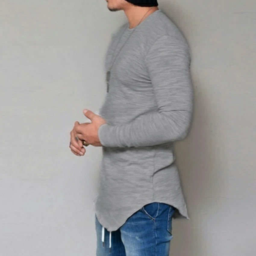 Мужские модные повседневные облегающие эластичные мягкие однотонные мужские футболки с длинным рукавом, мужские облегающие топы, футболка, длинная футболка