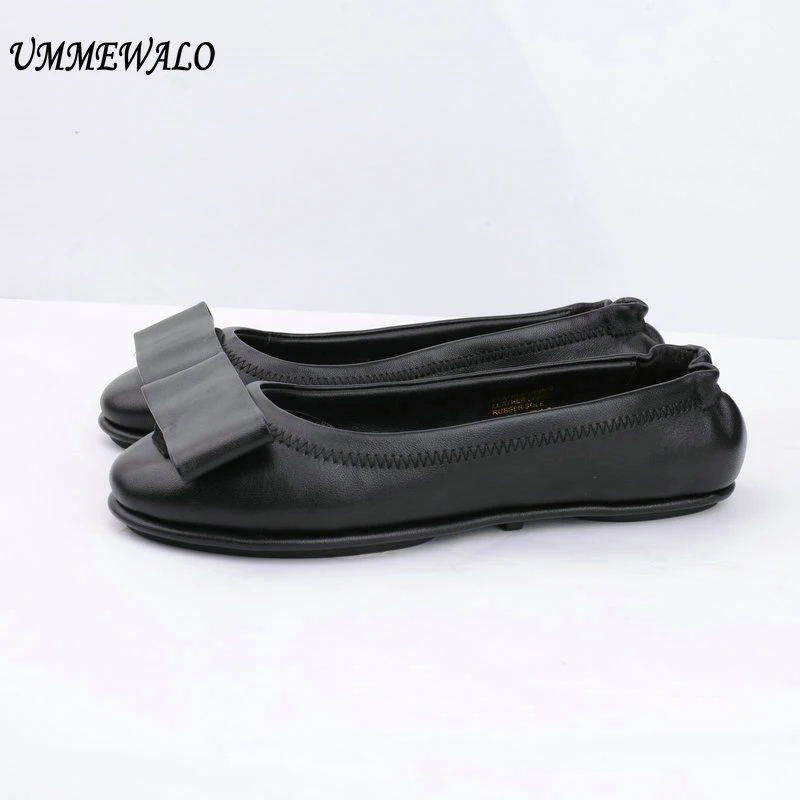 UMMEWALOженские мягкие балетки на плоской подошве, повседневные Высококачественные балетки из натуральной кожи с круглым носком