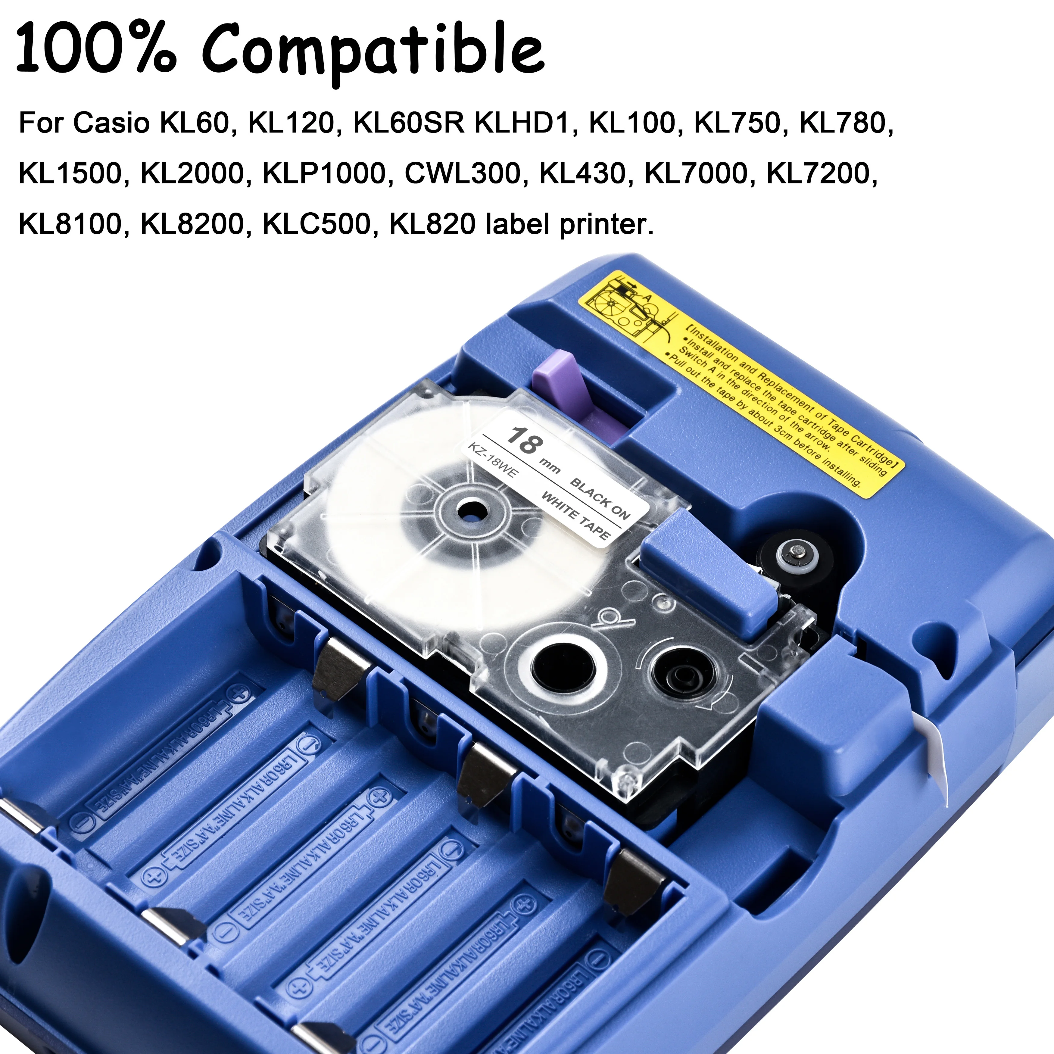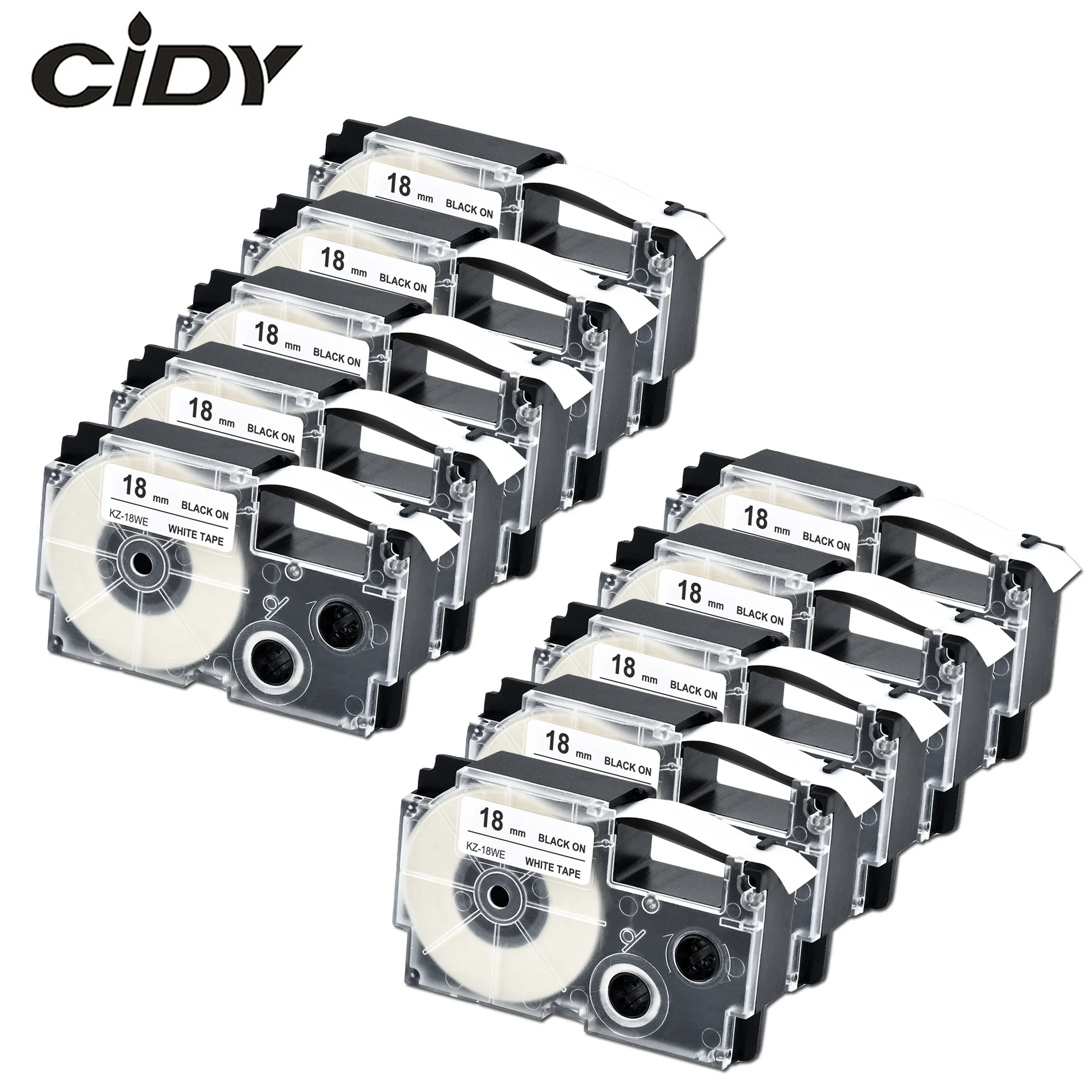 CIDY 10 шт. совместимый XR-18WE XR18WE 18 мм черный на белой ленте картридж для Casio label maker KL-120 KL-100 KL-780 KL1500