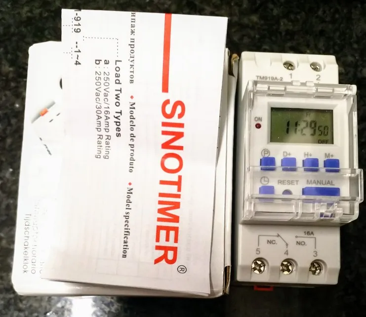 Таймер проверил работает на нагрузке до 1 кВт. Есть инструкция с русским-перевод через задницу, но настроить можно, меню интуитивно понятно. Упаковка в картонной коробке.Вообщем таймер ОК.