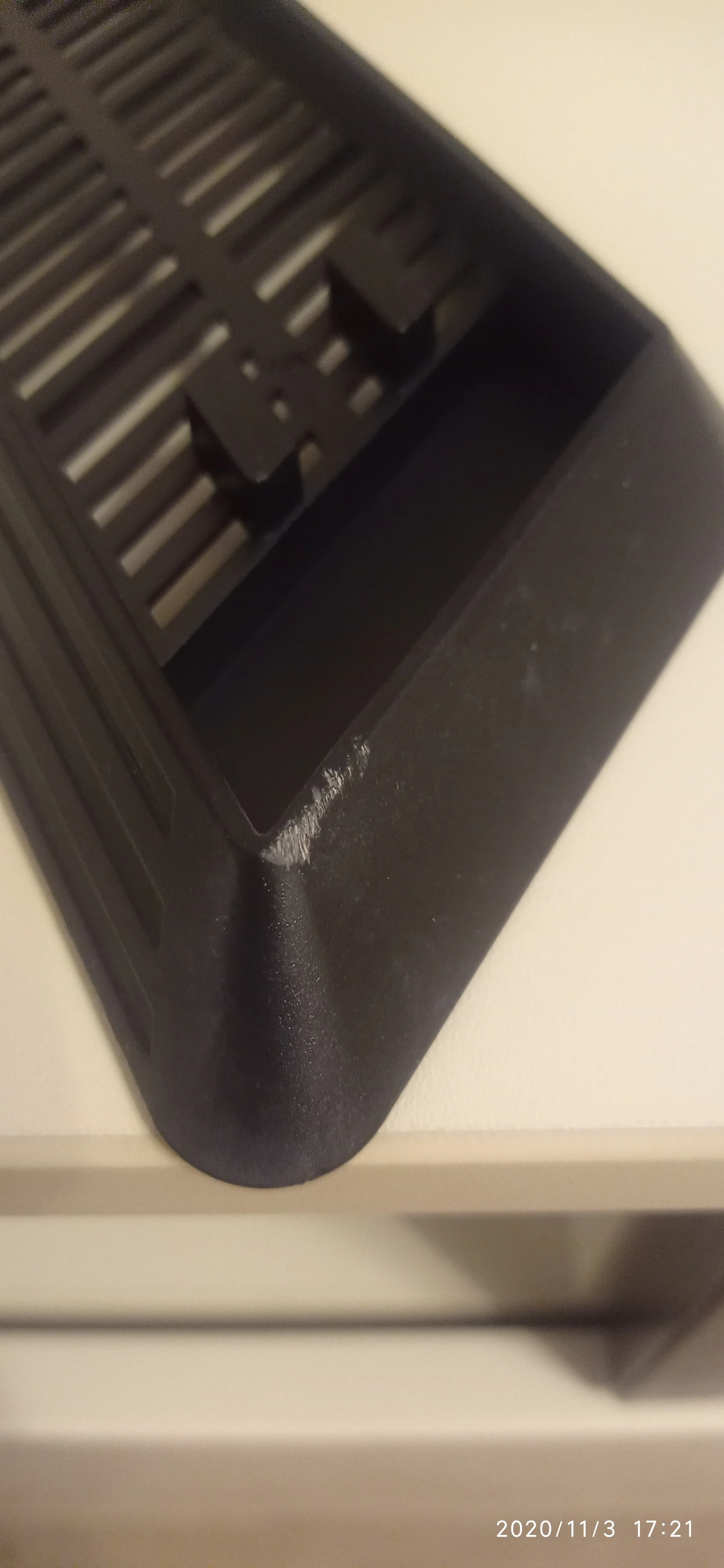 Доставка занимает 37 дней. Был отправлен в базовом пластиковом конверте без коробки/упаковки, поэтому я честно удивлен, что он не разбивается на части почтовой службой. Тем не менее он прибыл нормально. Хорошо подходит и очень прочный, с нескользящей подкладкой на нижней части. Около 1 см пространства под подставкой, что достаточно для Воздухозабора, поэтому консоль не должна перегреваться. В целом я рад и буду рекомендовать.