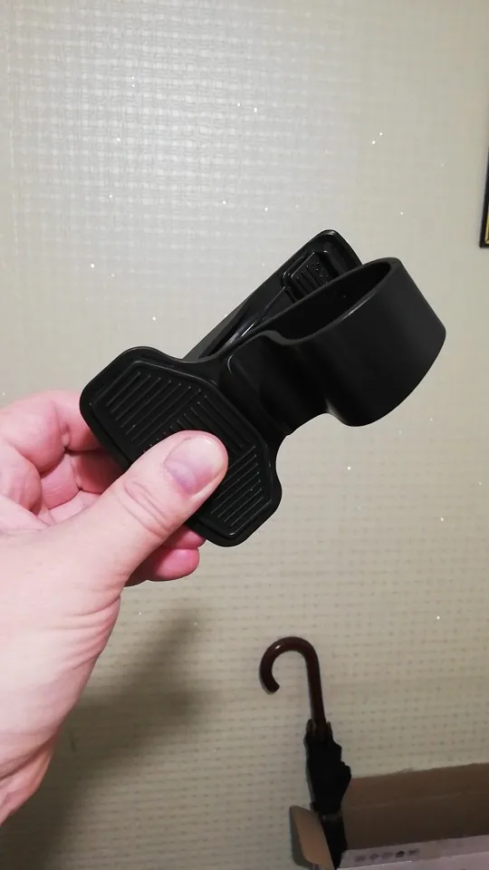 Обычная прищепка, держится крепко на козырьке. iPhone 11 держит хорошо. Не занимает много места