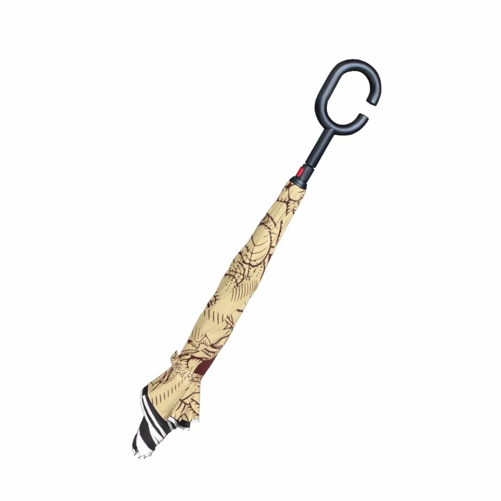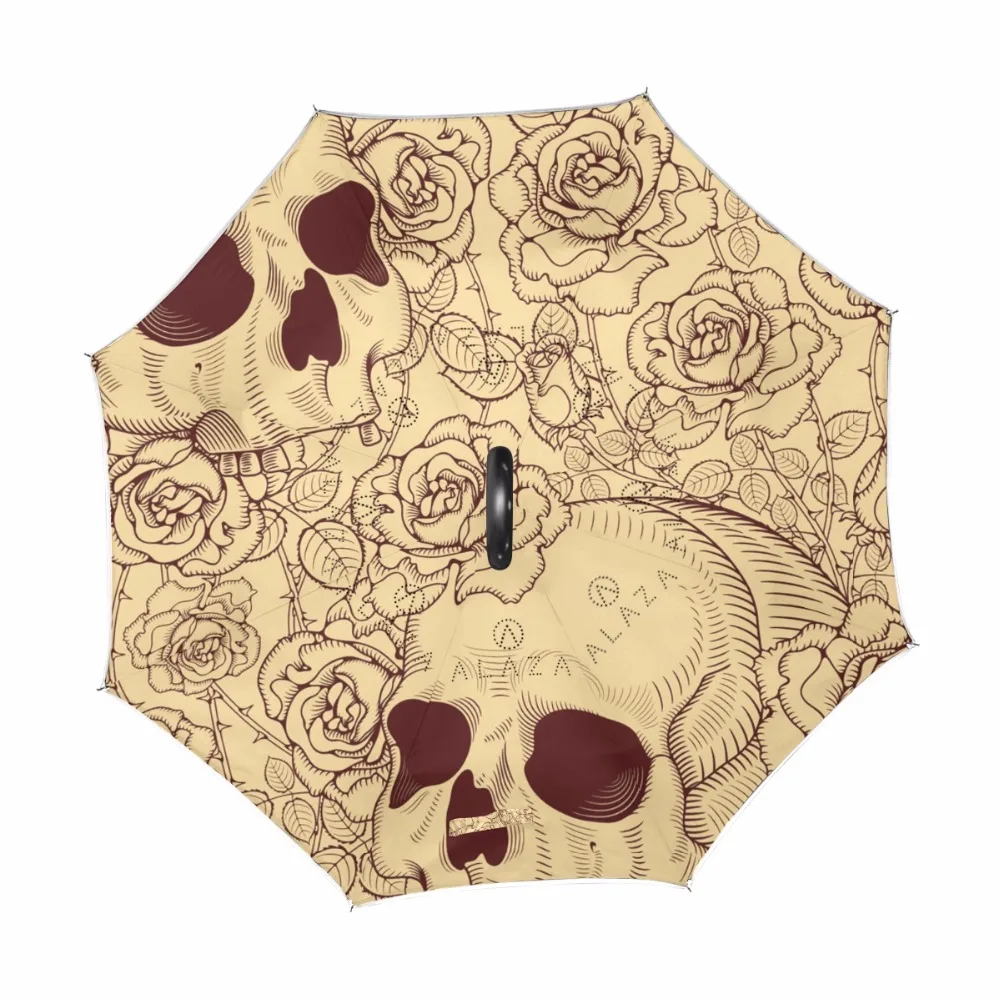Череп и цветы ветрозащитный обратный зонтик двойной слой длинный хвостовик перевернутый креативный индивидуальный защита от дождя дорожный размер