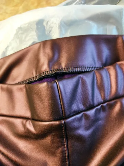 Товар прибыл очень быстро к нам... менее 2 недель. Леггинсы изготовлены из натуральной кожи и искусственной кожи. Они почти чувствуют себя как латекс, потому что они такие мягкие. Совет: как только они прибудут, дайте им повеситься снаружи и проветриться, чтобы удалить запах.